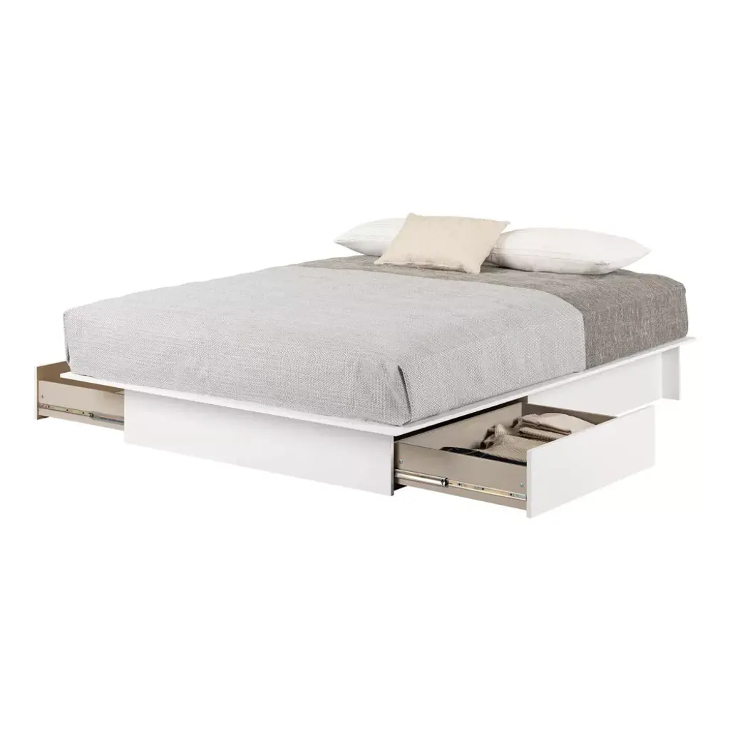 Queen Fusion 2 Drawer Platform Bed Pure White - South Shore: Storage, No Box Spring Required