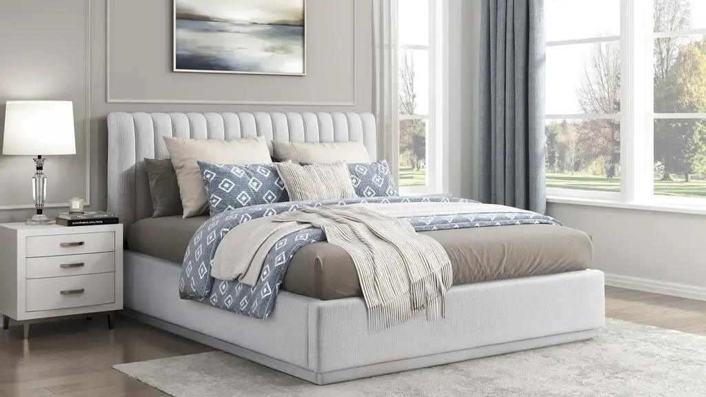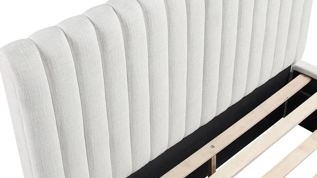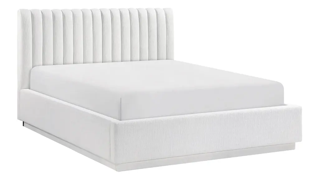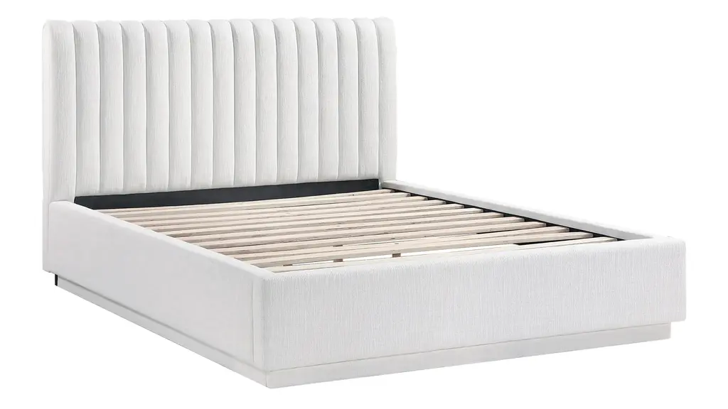 Create a luxurious and modern focal point in your bedroom with this Renly Platform Bed. Featuring a sturdy plywood frame and soft textured fabric upholstery with elegant channel tufting on the headboard, this bed offers both durability and sophisticated style. The complete set includes a channel-tufted headboard, footboard, slats, and rails, providing everything you need for a supportive and comfortable sleep experience. Designed to eliminate the need for a foundation or box spring, this platform bed offers a sleek, low-profile look that complements various decor styles.