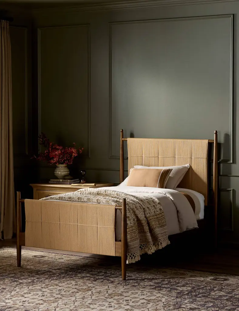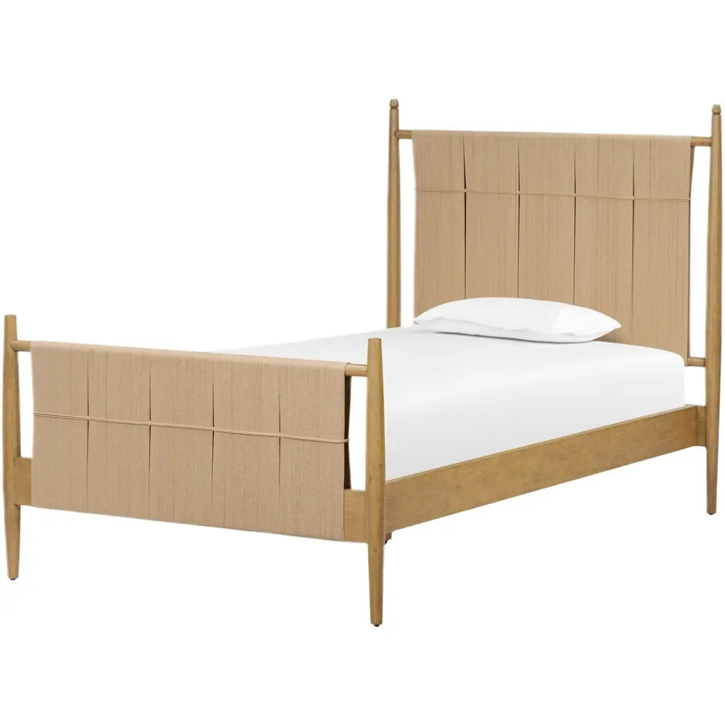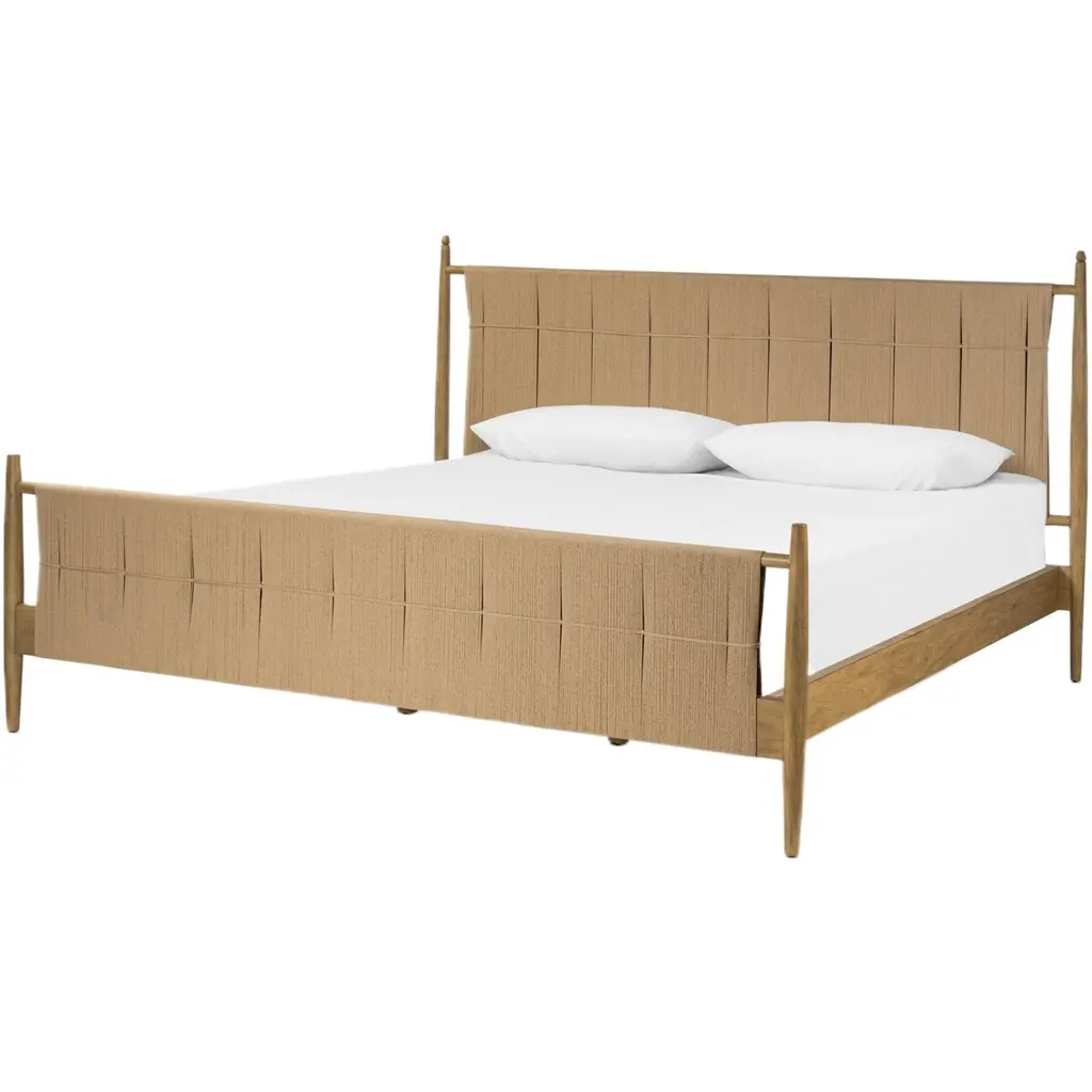 Four Hands brings their exceptional craftsmanship to a timeless collection rooted in Amber Lewis' perennial California style. We love the traditional-meets-modern style of this wood bed frame. Woven cord on the bed's headboard and footboard bring fresh character to the airy design.