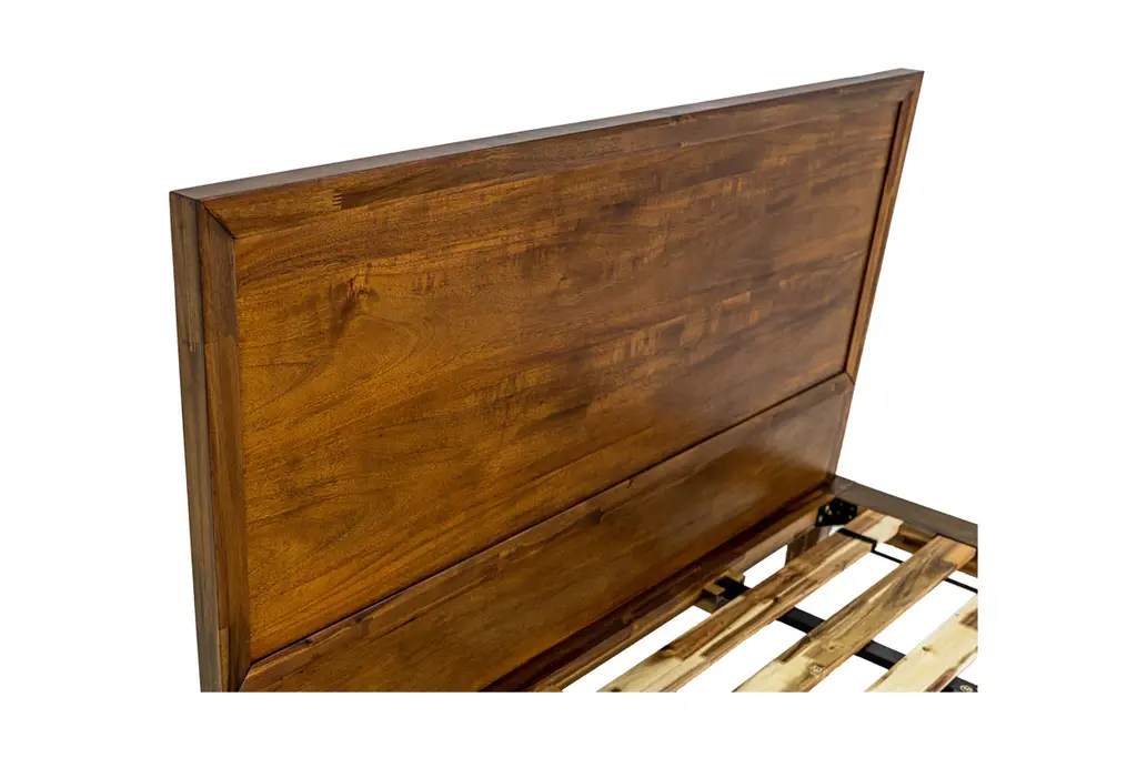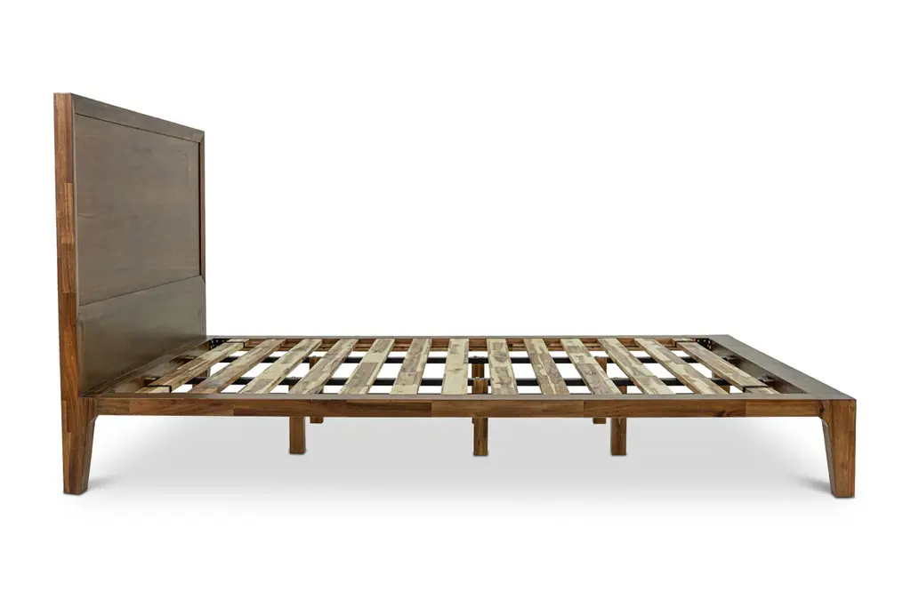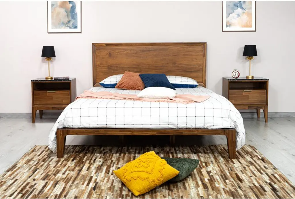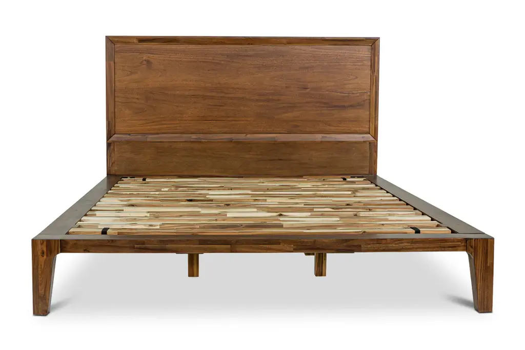 The Rutherford Platform Bed is a Mid-Century Modern masterpiece. It checks all the boxes – a modern silhouette, solid acacia wood frame, charming wood grain details, and a platform that eliminates the need for a box spring. The bed is available in Queen and King sizes and is the perfect choice for those looking to add a little style to where they snooze.