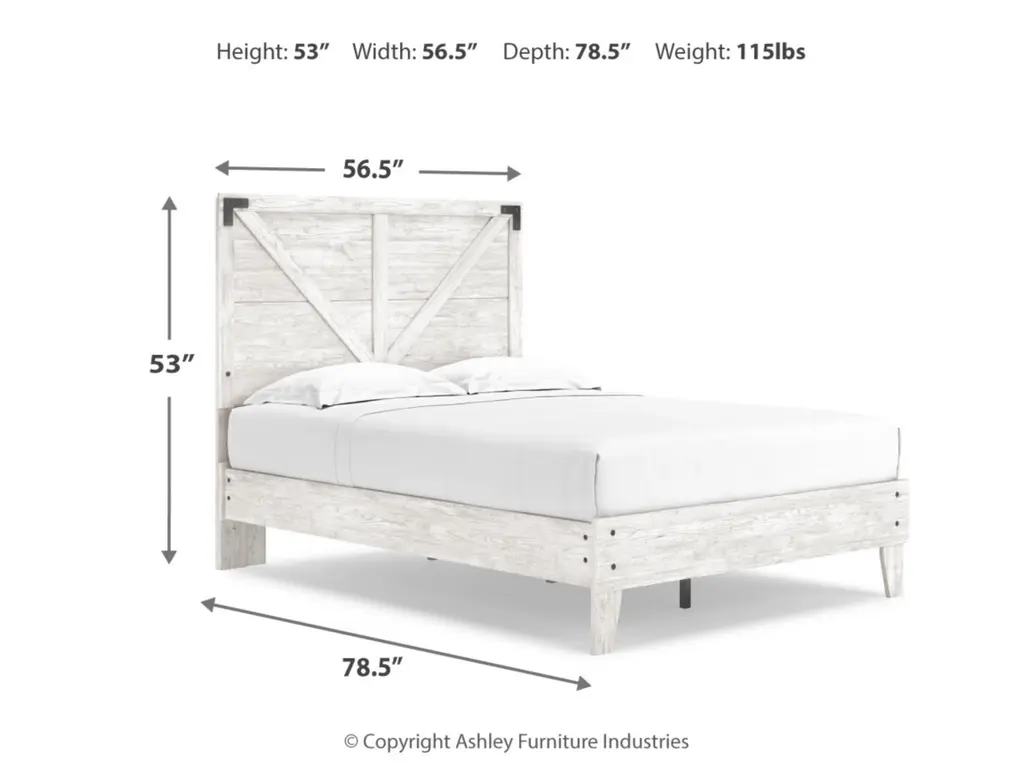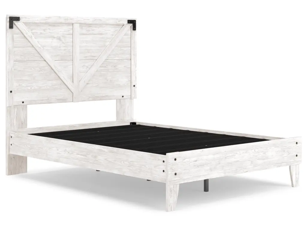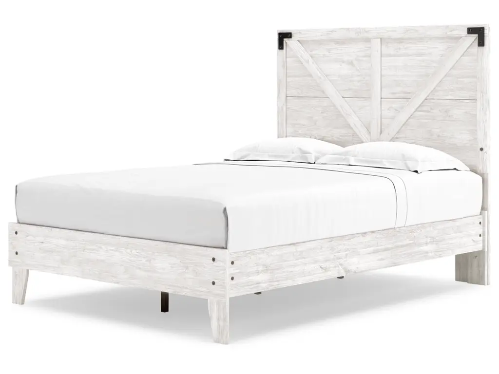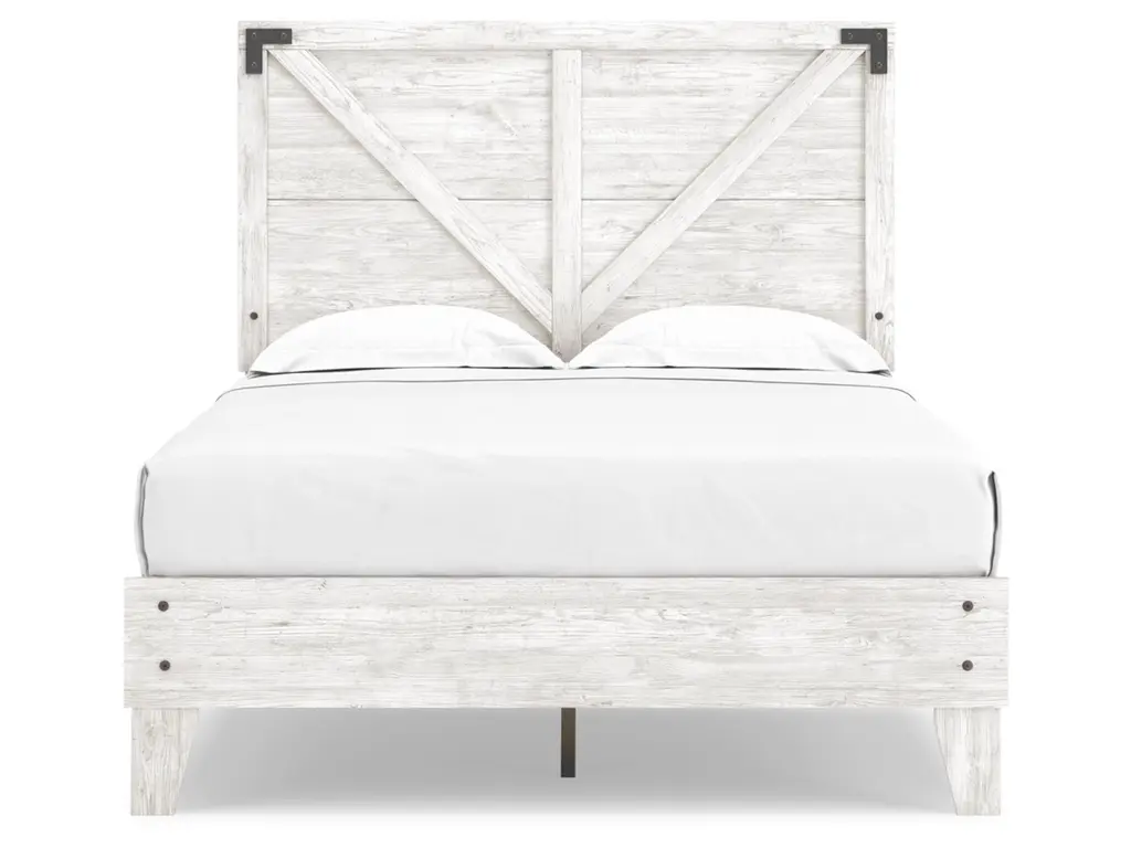 Give provincial a new meaning with the chic look of the Shawburn full crossbuck panel platform bed. The worn whitewash distressed finish keeps this piece light and fresh while the warm pewter-tone hardware adds an industrial touch. The panel headboard with crossbuck detail adds a delightfully homespun charm to your space. Best of all, our innovative bed-in-a-box shipping system delivers your new bed right to the door.