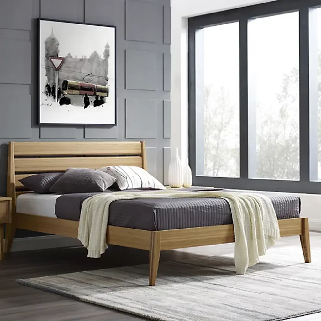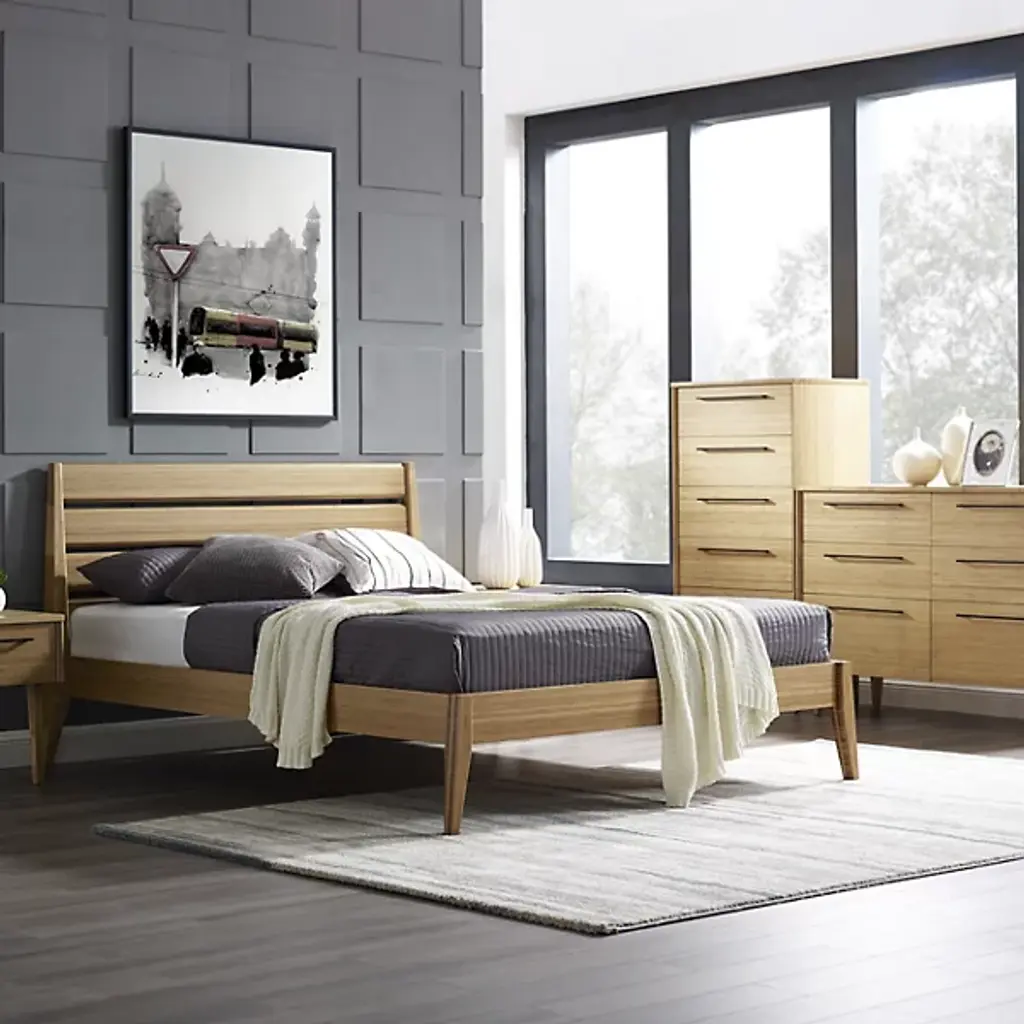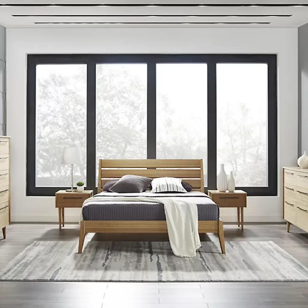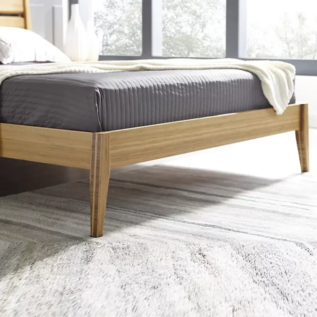 Smartly designed and richly finished. The Sienna Platform Bed from Greenington is a simply yet beautifully crafted piece of furniture that will bring style and comfort to your bedroom. It features modern fashion, stunning beveled edges, and a European slat system that doesn’t require a box spring. The stiletto platform legs give the product some added height to make it easier to lay down on. The frame is made out of 100% Moso bamboo, which is 20% harder than red oak and one of the most eco-friendly and renewable resources.