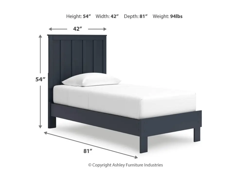 Immerse yourself in the Simmenfort twin platform bed, where Shaker-style design meets a stunning navy blue finish. The crisp lines effortlessly complement farmhouse, coastal and transitional decor. Sleek in its simplicity, this bed suits your desire for a fresh bedroom style with essential function. Weight 111.000 lbs. (49.95kgs.)