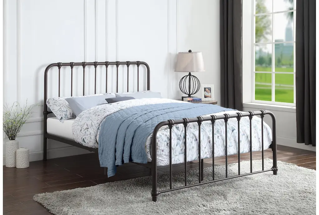 The Simone Dark Bronze Full Metal Platform Bed is a stunning rustic piece perfect for any kids' room. This bed comes with an ottoman and track arms, as well as foam cushions, making it both stylish and comfortable. Its long platform design adds an extra touch of elegance to any space.