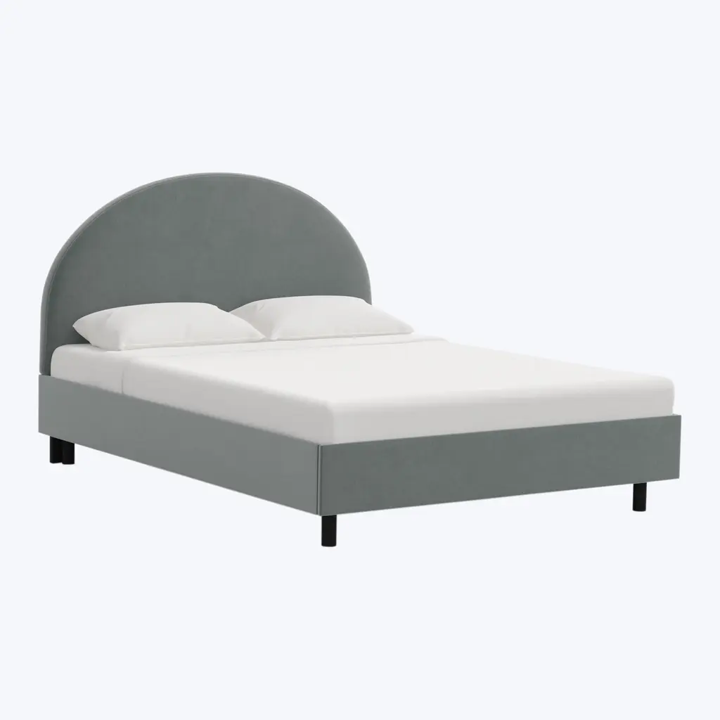 Illuminate your bedroom with the celestial elegance of the Solana Bed, a radiant centerpiece that brings the warmth of the sun and the serenity of the moon into your space. Its rounded headboard evokes a sense of calm and balance, while its minimalist legs seem to float like stars in the night sky. Crafted with care and precision in the United States, this bed is not only a visual masterpiece but also a testament to sustainable craftsmanship, using FSC-certified wood to ensure an eco-friendly choice for your home. Customers love the Solana Bed for guest rooms, children’s rooms, and vacation homes, where its serene and timeless design adds a touch of tranquility. The gentle curve of the headboard creates a soft, welcoming atmosphere, perfect for unwinding after a long day or providing a cozy sanctuary for your guests. Its versatile silhouette seamlessly blends with various interior styles, from natural bohemian vibes to sleek, modern spaces, making it a dream fit for any room. The bed’s platform frame is as functional as it is beautiful. With a wooden slat system that fits effortlessly onto its sturdy metal frame, there’s no need for a box spring—just pure, uninterrupted comfort. The simplicity of this design, paired with your choice of hand-selected fabrics, allows for customization to match your personal style. Choose from luxurious velvets, soft polyester blends, or textured boucle to create a bed that perfectly reflects the mood and theme of your space. Handmade with precision in the United States, the Solana Bed radiates quality and care in every detail. From the FSC-certified wood to the custom upholstery options, each element is designed with sustainability and elegance in mind. The minimalist legs and clean lines reflect the vast openness of the night sky, while the rounded headboard echoes the phases of the moon, creating a harmonious balance between form and function. The Solana Bed invites you to experience the cosmos within the comfort of your own home. Its celestial design and eco-conscious construction make it an out-of-this-world addition to any space, ensuring that every night feels like you're sleeping under the stars.