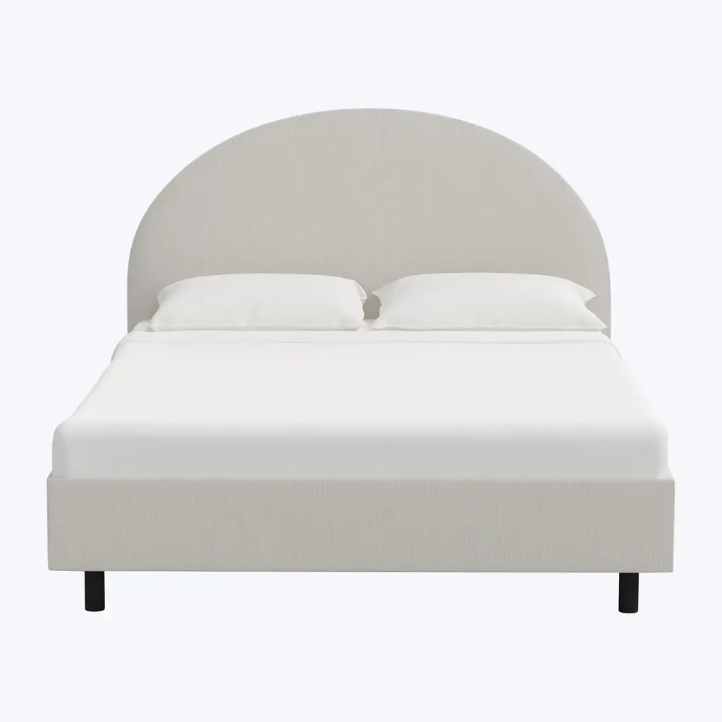Illuminate your bedroom with the celestial elegance of the Solana Bed, a radiant centerpiece that brings the warmth of the sun and the serenity of the moon into your space. Its rounded headboard evokes a sense of calm and balance, while its minimalist legs seem to float like stars in the night sky. Crafted with care and precision in the United States, this bed is not only a visual masterpiece but also a testament to sustainable craftsmanship, using FSC-certified wood to ensure an eco-friendly choice for your home. Customers love the Solana Bed for guest rooms, children’s rooms, and vacation homes, where its serene and timeless design adds a touch of tranquility. The gentle curve of the headboard creates a soft, welcoming atmosphere, perfect for unwinding after a long day or providing a cozy sanctuary for your guests. Its versatile silhouette seamlessly blends with various interior styles, from natural bohemian vibes to sleek, modern spaces, making it a dream fit for any room. The bed’s platform frame is as functional as it is beautiful. With a wooden slat system that fits effortlessly onto its sturdy metal frame, there’s no need for a box spring—just pure, uninterrupted comfort. The simplicity of this design, paired with your choice of hand-selected fabrics, allows for customization to match your personal style. Choose from luxurious velvets, soft polyester blends, or textured boucle to create a bed that perfectly reflects the mood and theme of your space. Handmade with precision in the United States, the Solana Bed radiates quality and care in every detail. From the FSC-certified wood to the custom upholstery options, each element is designed with sustainability and elegance in mind. The minimalist legs and clean lines reflect the vast openness of the night sky, while the rounded headboard echoes the phases of the moon, creating a harmonious balance between form and function. The Solana Bed invites you to experience the cosmos within the comfort of your own home. Its celestial design and eco-conscious construction make it an out-of-this-world addition to any space, ensuring that every night feels like you're sleeping under the stars.