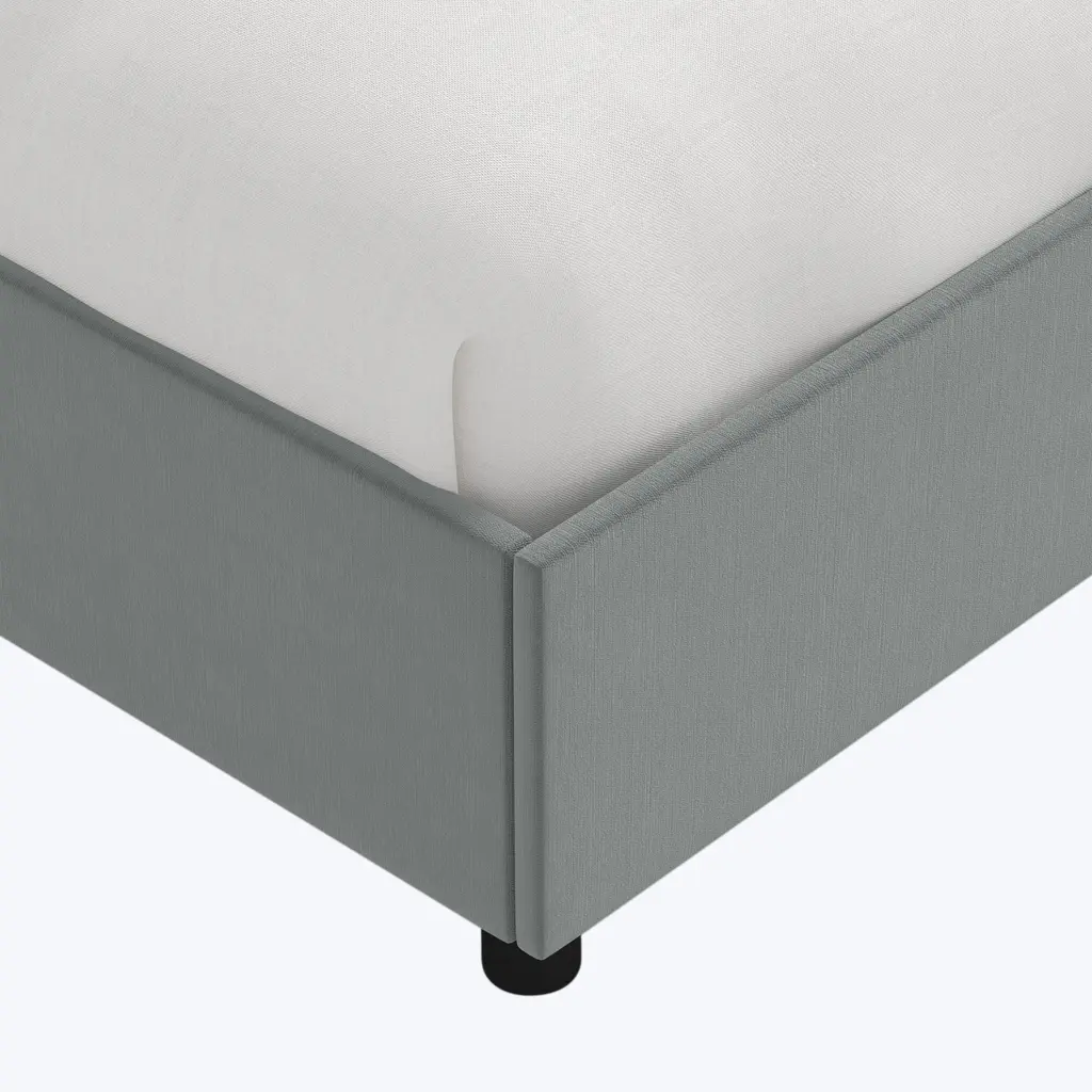 Illuminate your bedroom with the celestial elegance of the Solana Bed, a radiant centerpiece that brings the warmth of the sun and the serenity of the moon into your space. Its rounded headboard evokes a sense of calm and balance, while its minimalist legs seem to float like stars in the night sky. Crafted with care and precision in the United States, this bed is not only a visual masterpiece but also a testament to sustainable craftsmanship, using FSC-certified wood to ensure an eco-friendly choice for your home. Customers love the Solana Bed for guest rooms, children’s rooms, and vacation homes, where its serene and timeless design adds a touch of tranquility. The gentle curve of the headboard creates a soft, welcoming atmosphere, perfect for unwinding after a long day or providing a cozy sanctuary for your guests. Its versatile silhouette seamlessly blends with various interior styles, from natural bohemian vibes to sleek, modern spaces, making it a dream fit for any room. The bed’s platform frame is as functional as it is beautiful. With a wooden slat system that fits effortlessly onto its sturdy metal frame, there’s no need for a box spring—just pure, uninterrupted comfort. The simplicity of this design, paired with your choice of hand-selected fabrics, allows for customization to match your personal style. Choose from luxurious velvets, soft polyester blends, or textured boucle to create a bed that perfectly reflects the mood and theme of your space. Handmade with precision in the United States, the Solana Bed radiates quality and care in every detail. From the FSC-certified wood to the custom upholstery options, each element is designed with sustainability and elegance in mind. The minimalist legs and clean lines reflect the vast openness of the night sky, while the rounded headboard echoes the phases of the moon, creating a harmonious balance between form and function. The Solana Bed invites you to experience the cosmos within the comfort of your own home. Its celestial design and eco-conscious construction make it an out-of-this-world addition to any space, ensuring that every night feels like you're sleeping under the stars.