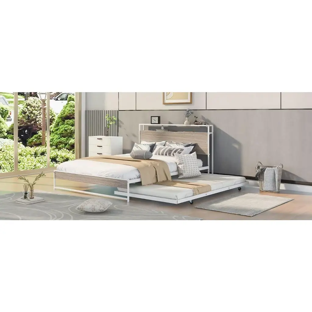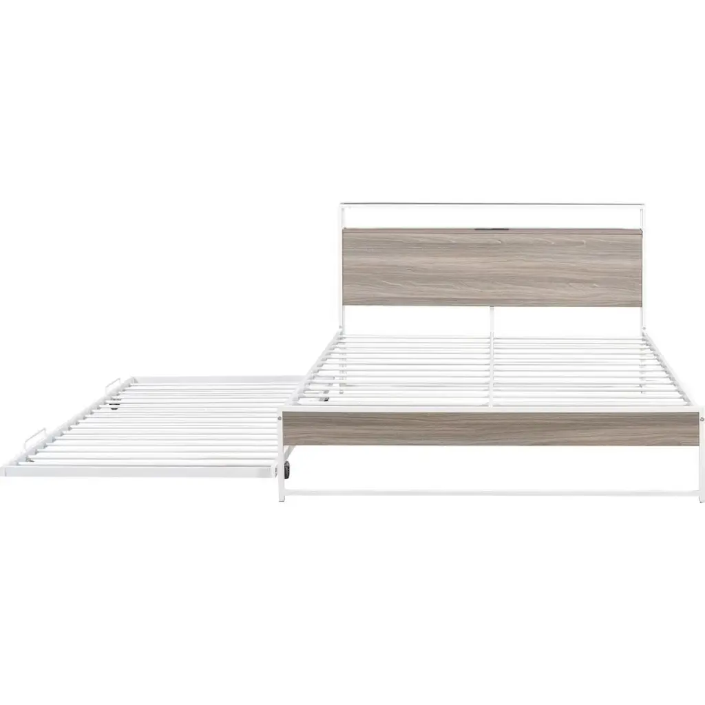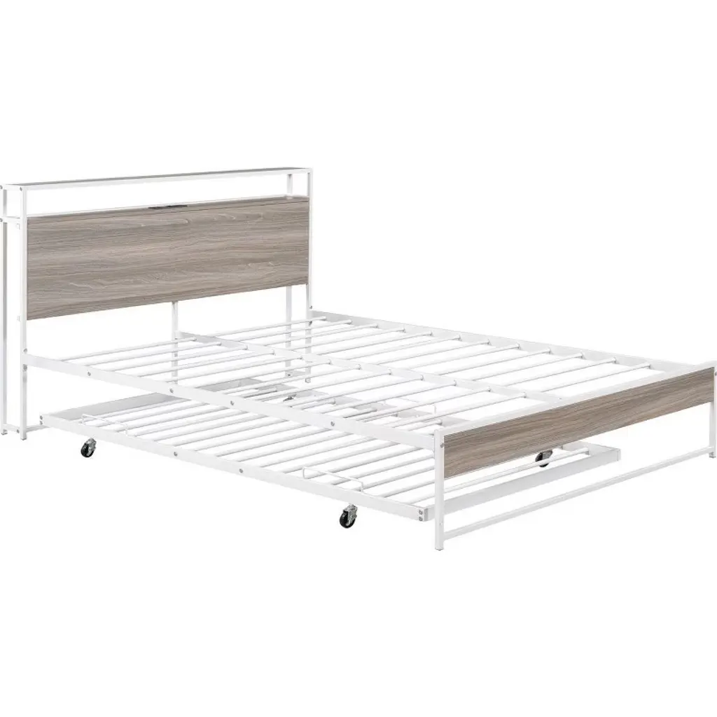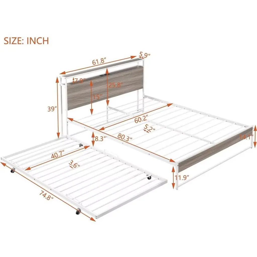 Streamdale Queen Size Metal Platform Bed Frame With Trundle, Usb Ports And Slat Support, No Box Spring