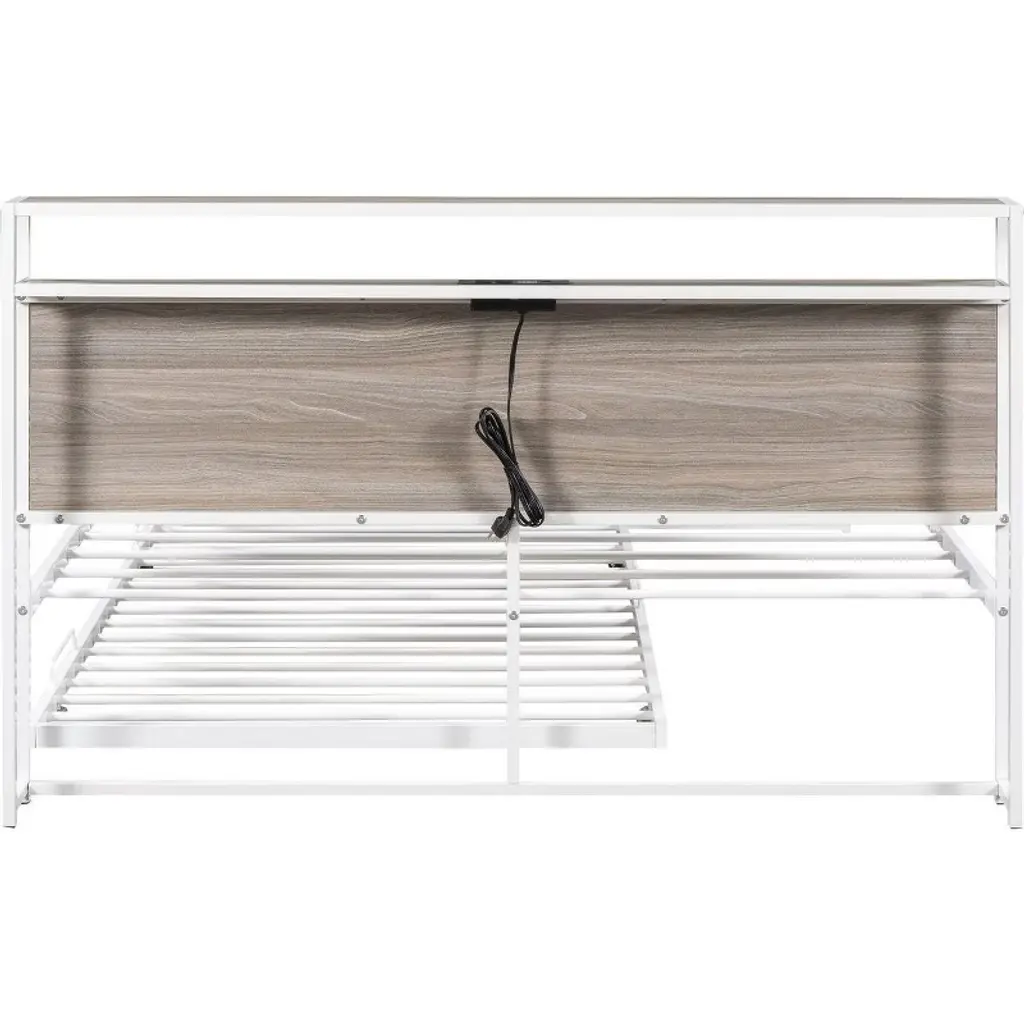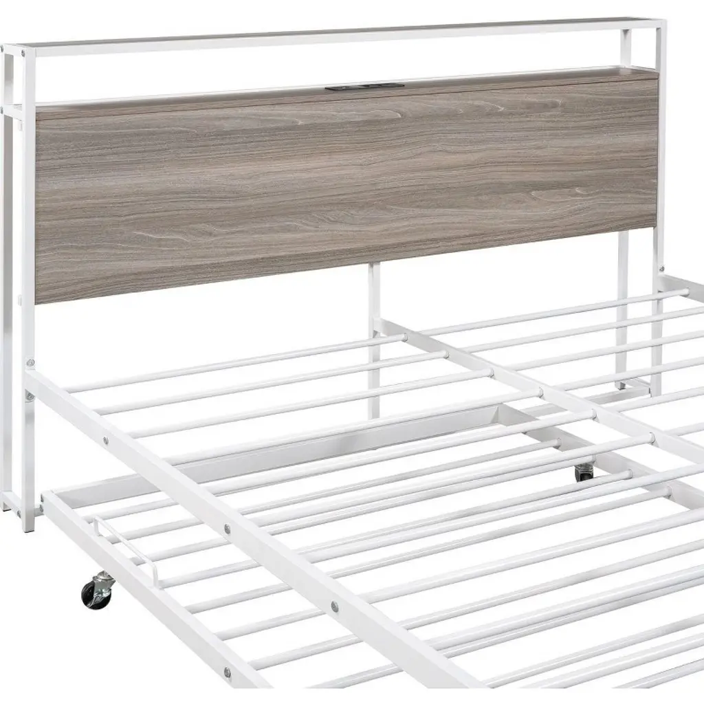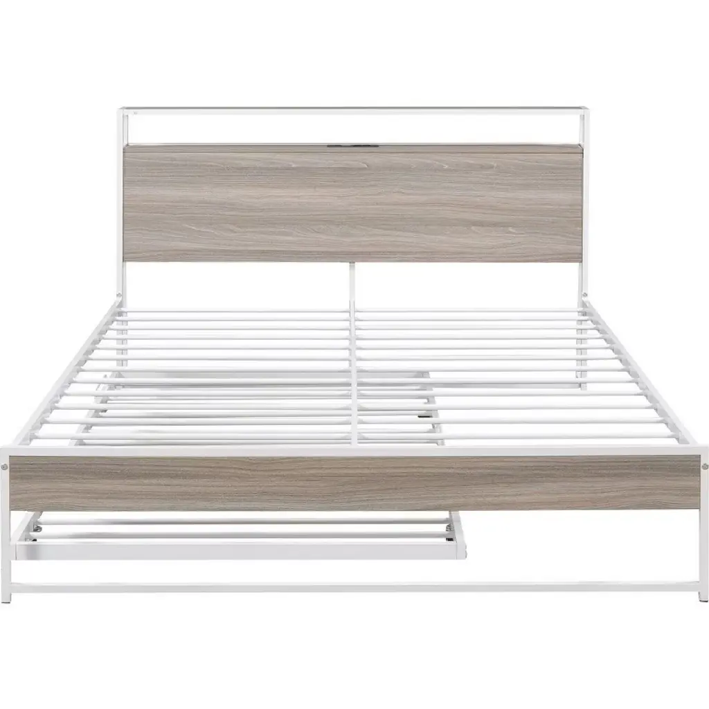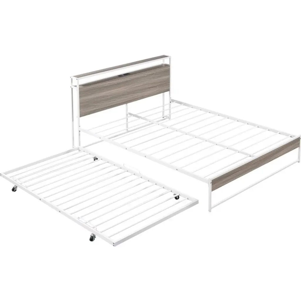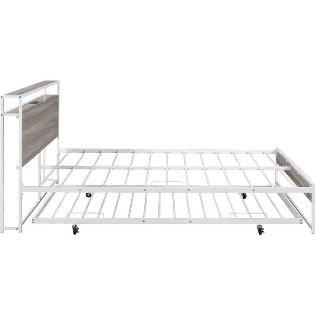 Streamdale Queen Size Metal Platform Bed Frame With Trundle, Usb Ports And Slat Support, No Box Spring