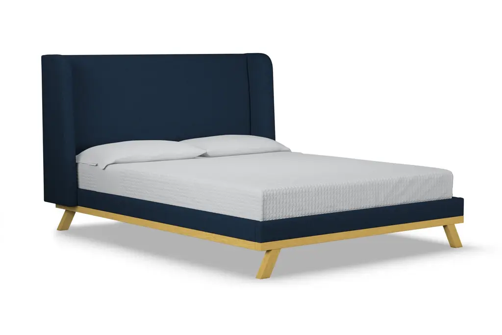 The Tatum Upholstered Platform Bed is the perfect marriage between fabric upholstery and solid wood accents. The Tatum utilizes a traditional shelter headboard design and makes it feel completely fresh and modern by placing it upon a solid wood base. Choose any of our high grade fabrics and you'll see just how expertly and beautifully the wood base contrasts and complements the upholstery. This is the modern bed that you've been dreaming of. The Tatum is built to order in our downtown Los Angeles factory (Made in the USA!) and it's handcrafted using high end components and materials. The frame is made from solid, kiln-dried Alder wood, the headboard is foam-wrapped for comfort, and the upholstery options are all graded for commercial use (yes that means they're also pet and kid friendly!). This is a true platform bed that features hardwood slats, but it does require a bunkie board as additional mattress support. This contemporary bed is one of the finest designs we've ever offered.