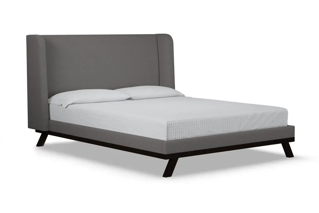 The Tatum Upholstered Platform Bed is the perfect marriage between fabric upholstery and solid wood accents. The Tatum utilizes a traditional shelter headboard design and makes it feel completely fresh and modern by placing it upon a solid wood base. Choose any of our high grade fabrics and you'll see just how expertly and beautifully the wood base contrasts and complements the upholstery. This is the modern bed that you've been dreaming of. The Tatum is built to order in our downtown Los Angeles factory (Made in the USA!) and it's handcrafted using high end components and materials. The frame is made from solid, kiln-dried Alder wood, the headboard is foam-wrapped for comfort, and the upholstery options are all graded for commercial use (yes that means they're also pet and kid friendly!). This is a true platform bed that features hardwood slats, but it does require a bunkie board as additional mattress support. This contemporary bed is one of the finest designs we've ever offered.