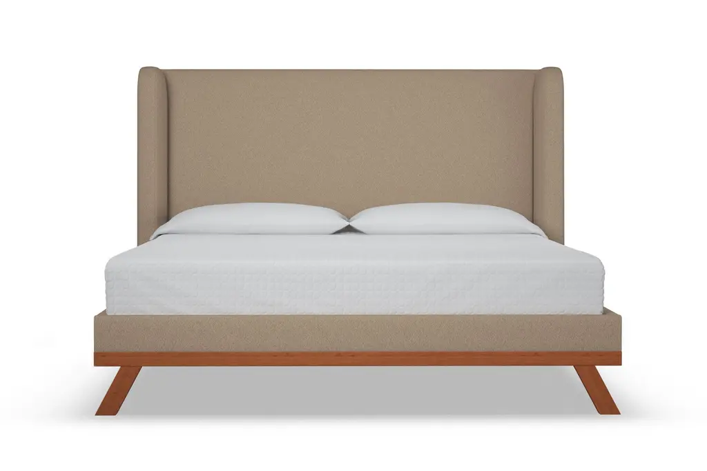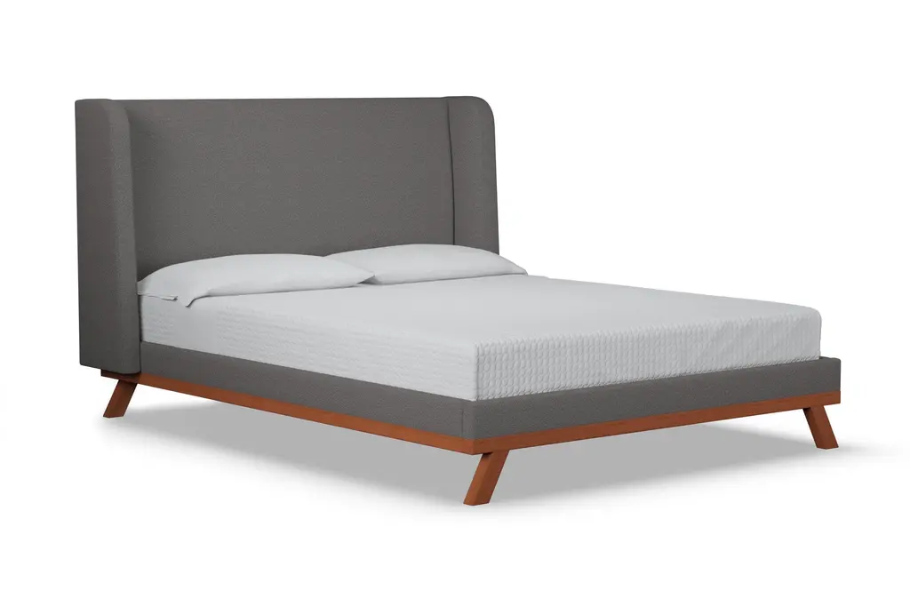 The Tatum Upholstered Platform Bed is the perfect marriage between fabric upholstery and solid wood accents. The Tatum utilizes a traditional shelter headboard design and makes it feel completely fresh and modern by placing it upon a solid wood base. Choose any of our high grade fabrics and you'll see just how expertly and beautifully the wood base contrasts and complements the upholstery. This is the modern bed that you've been dreaming of. The Tatum is built to order in our downtown Los Angeles factory (Made in the USA!) and it's handcrafted using high end components and materials. The frame is made from solid, kiln-dried Alder wood, the headboard is foam-wrapped for comfort, and the upholstery options are all graded for commercial use (yes that means they're also pet and kid friendly!). This is a true platform bed that features hardwood slats, but it does require a bunkie board as additional mattress support. This contemporary bed is one of the finest designs we've ever offered.
