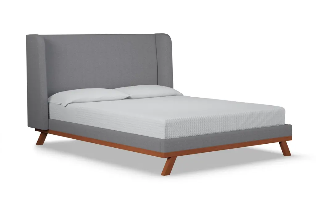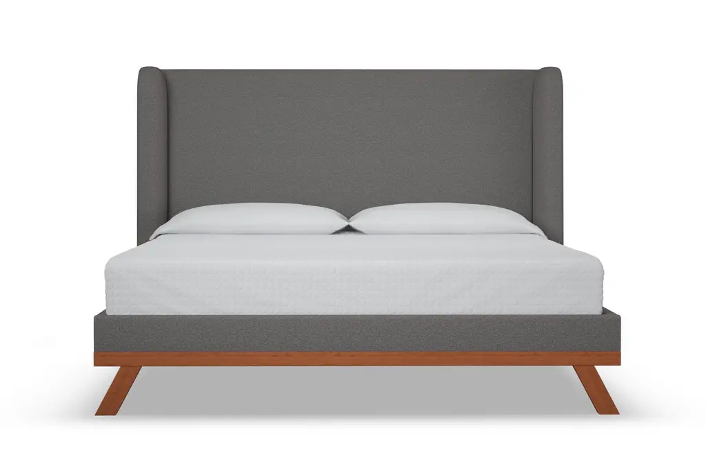The Tatum Upholstered Platform Bed is the perfect marriage between fabric upholstery and solid wood accents. The Tatum utilizes a traditional shelter headboard design and makes it feel completely fresh and modern by placing it upon a solid wood base. Choose any of our high grade fabrics and you'll see just how expertly and beautifully the wood base contrasts and complements the upholstery. This is the modern bed that you've been dreaming of. The Tatum is built to order in our downtown Los Angeles factory (Made in the USA!) and it's handcrafted using high end components and materials. The frame is made from solid, kiln-dried Alder wood, the headboard is foam-wrapped for comfort, and the upholstery options are all graded for commercial use (yes that means they're also pet and kid friendly!). This is a true platform bed that features hardwood slats, but it does require a bunkie board as additional mattress support. This contemporary bed is one of the finest designs we've ever offered.