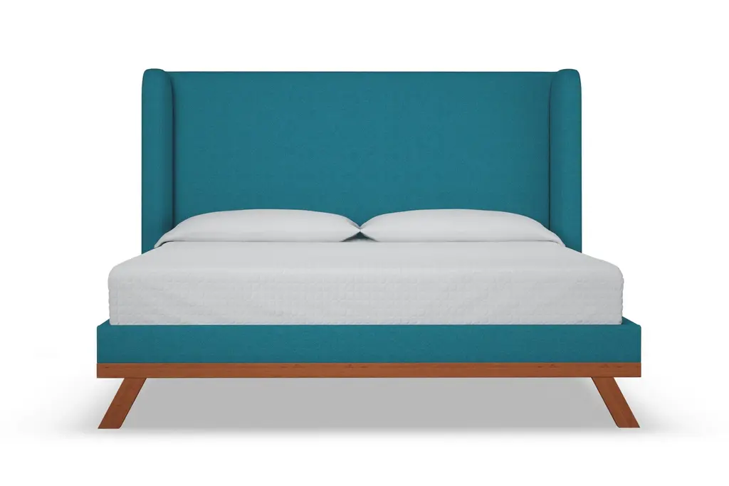 The Tatum Upholstered Platform Bed is the perfect marriage between fabric upholstery and solid wood accents. The Tatum utilizes a traditional shelter headboard design and makes it feel completely fresh and modern by placing it upon a solid wood base. Choose any of our high grade fabrics and you'll see just how expertly and beautifully the wood base contrasts and complements the upholstery. This is the modern bed that you've been dreaming of. The Tatum is built to order in our downtown Los Angeles factory (Made in the USA!) and it's handcrafted using high end components and materials. The frame is made from solid, kiln-dried Alder wood, the headboard is foam-wrapped for comfort, and the upholstery options are all graded for commercial use (yes that means they're also pet and kid friendly!). This is a true platform bed that features hardwood slats, but it does require a bunkie board as additional mattress support. This contemporary bed is one of the finest designs we've ever offered.