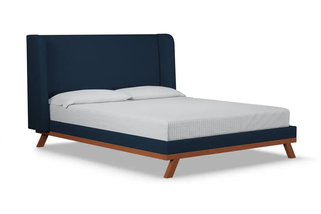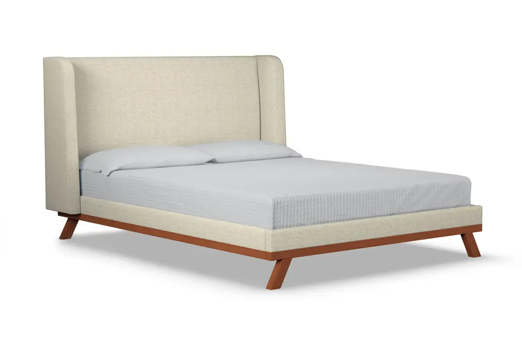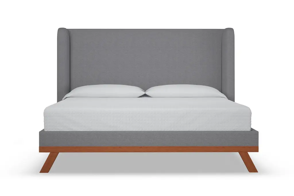 The Tatum Upholstered Platform Bed is the perfect marriage between fabric upholstery and solid wood accents. The Tatum utilizes a traditional shelter headboard design and makes it feel completely fresh and modern by placing it upon a solid wood base. Choose any of our high grade fabrics and you'll see just how expertly and beautifully the wood base contrasts and complements the upholstery. This is the modern bed that you've been dreaming of. The Tatum is built to order in our downtown Los Angeles factory (Made in the USA!) and it's handcrafted using high end components and materials. The frame is made from solid, kiln-dried Alder wood, the headboard is foam-wrapped for comfort, and the upholstery options are all graded for commercial use (yes that means they're also pet and kid friendly!). This is a true platform bed that features hardwood slats, but it does require a bunkie board as additional mattress support. This contemporary bed is one of the finest designs we've ever offered.