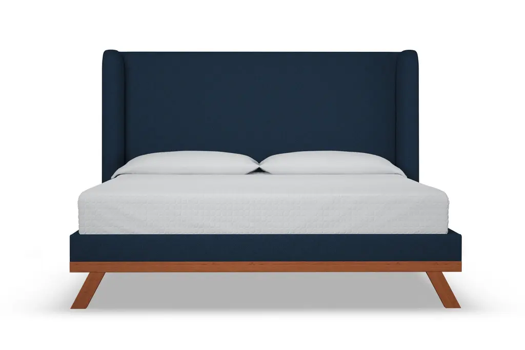 The Tatum Upholstered Platform Bed is the perfect marriage between fabric upholstery and solid wood accents. The Tatum utilizes a traditional shelter headboard design and makes it feel completely fresh and modern by placing it upon a solid wood base. Choose any of our high grade fabrics and you'll see just how expertly and beautifully the wood base contrasts and complements the upholstery. This is the modern bed that you've been dreaming of. The Tatum is built to order in our downtown Los Angeles factory (Made in the USA!) and it's handcrafted using high end components and materials. The frame is made from solid, kiln-dried Alder wood, the headboard is foam-wrapped for comfort, and the upholstery options are all graded for commercial use (yes that means they're also pet and kid friendly!). This is a true platform bed that features hardwood slats, but it does require a bunkie board as additional mattress support. This contemporary bed is one of the finest designs we've ever offered.
