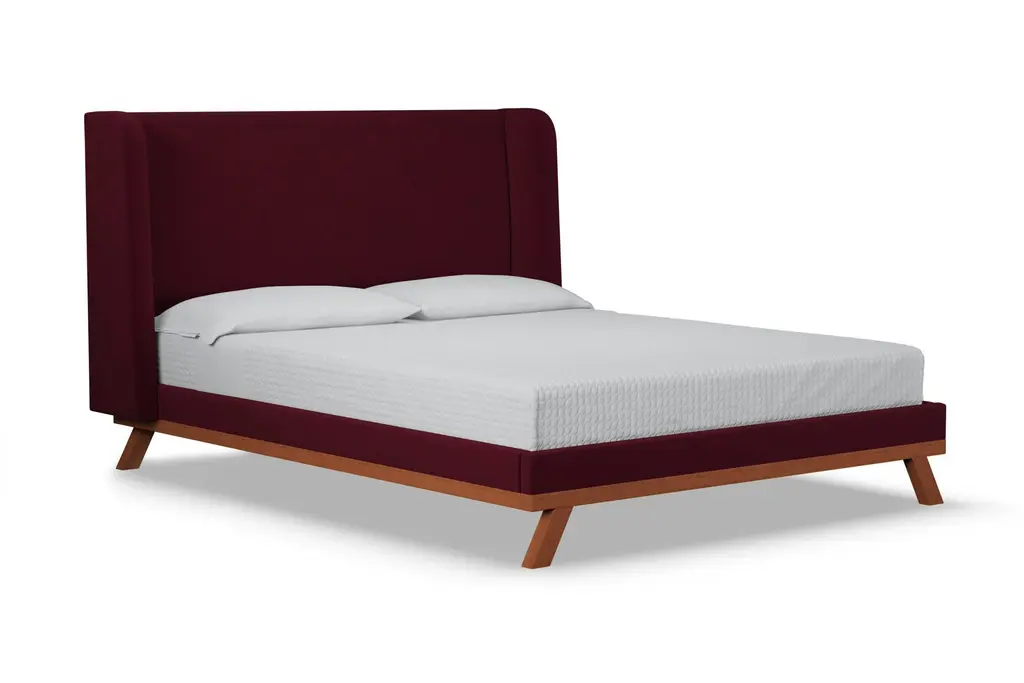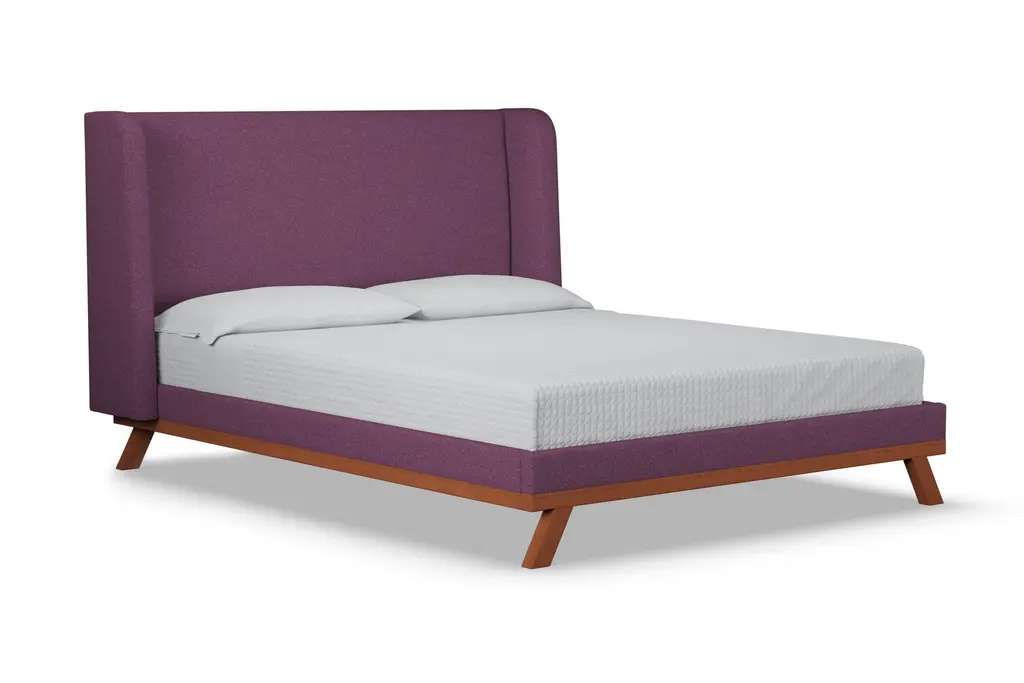 The Tatum Upholstered Platform Bed is the perfect marriage between fabric upholstery and solid wood accents. The Tatum utilizes a traditional shelter headboard design and makes it feel completely fresh and modern by placing it upon a solid wood base. Choose any of our high grade fabrics and you'll see just how expertly and beautifully the wood base contrasts and complements the upholstery. This is the modern bed that you've been dreaming of. The Tatum is built to order in our downtown Los Angeles factory (Made in the USA!) and it's handcrafted using high end components and materials. The frame is made from solid, kiln-dried Alder wood, the headboard is foam-wrapped for comfort, and the upholstery options are all graded for commercial use (yes that means they're also pet and kid friendly!). This is a true platform bed that features hardwood slats, but it does require a bunkie board as additional mattress support. This contemporary bed is one of the finest designs we've ever offered.
