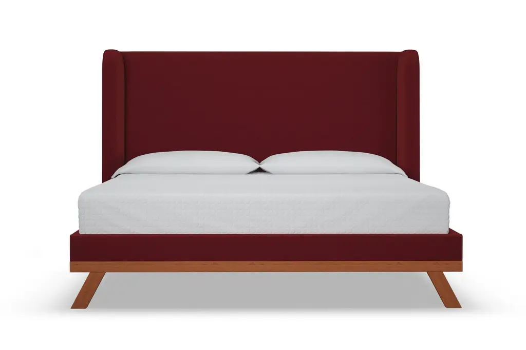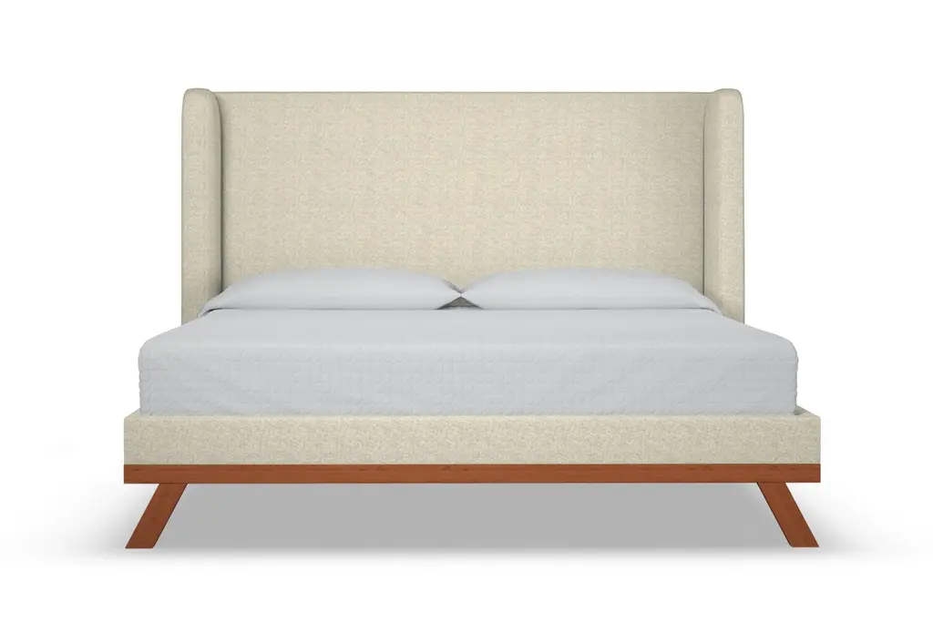 The Tatum Upholstered Platform Bed is the perfect marriage between fabric upholstery and solid wood accents. The Tatum utilizes a traditional shelter headboard design and makes it feel completely fresh and modern by placing it upon a solid wood base. Choose any of our high grade fabrics and you'll see just how expertly and beautifully the wood base contrasts and complements the upholstery. This is the modern bed that you've been dreaming of. The Tatum is built to order in our downtown Los Angeles factory (Made in the USA!) and it's handcrafted using high end components and materials. The frame is made from solid, kiln-dried Alder wood, the headboard is foam-wrapped for comfort, and the upholstery options are all graded for commercial use (yes that means they're also pet and kid friendly!). This is a true platform bed that features hardwood slats, but it does require a bunkie board as additional mattress support. This contemporary bed is one of the finest designs we've ever offered.