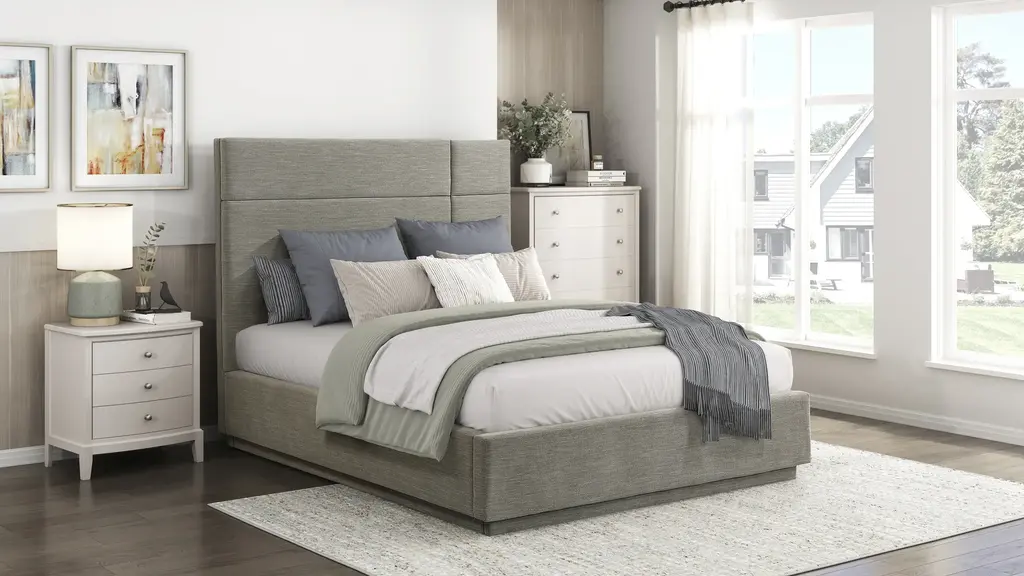 The fully upholstered design of the Tiana Platform Bed is an elegant addition to your modern bedroom. Textured upholstery covers the channel tufted headboard, footboard, and rails, creating a bold statement and neutral decorative canvas.