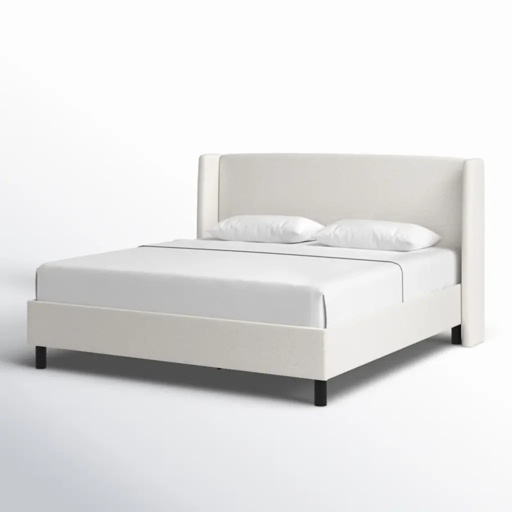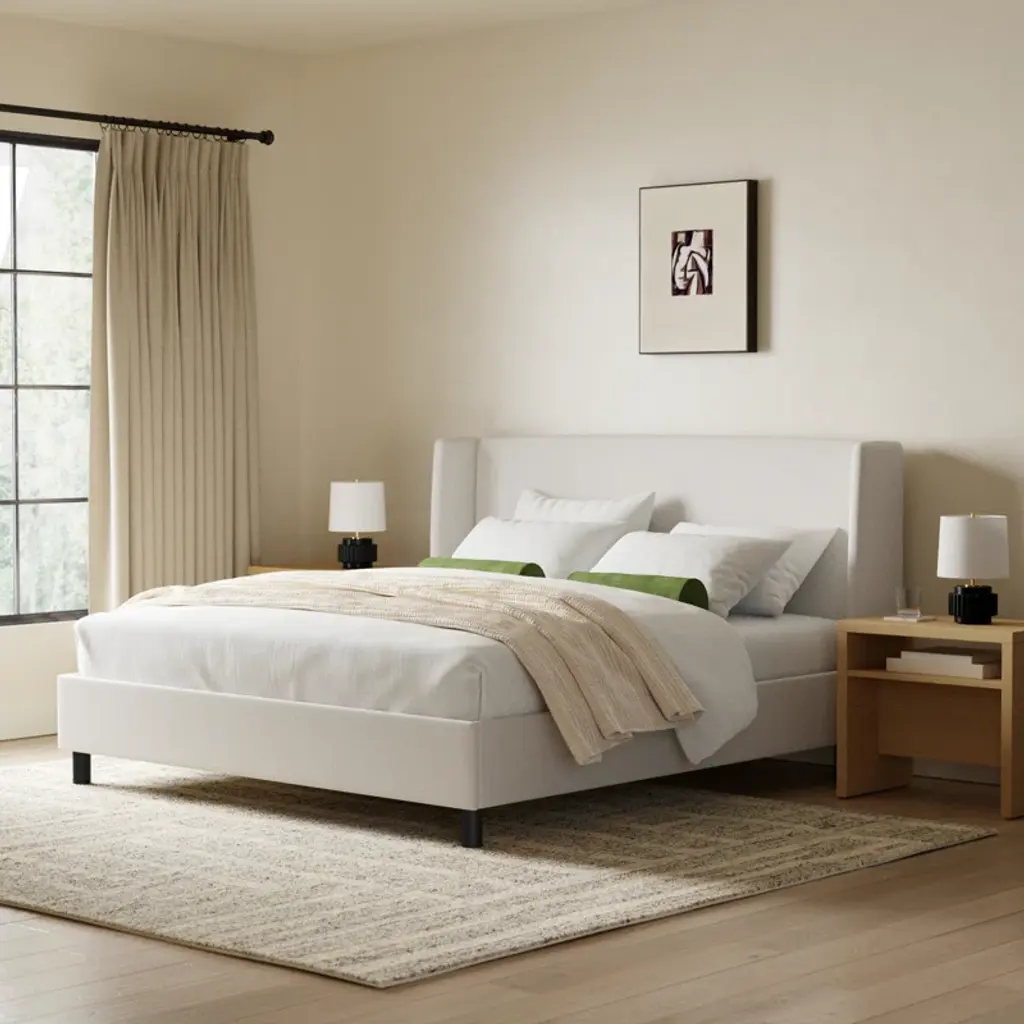 With its understated yet elegant design, our platform bed sets the stage in your main or guest bedroom. A solid wood frame provides durability, while the upholstered wingback headboard offers just-right support. It's made to order in the USA in your choice of size and color for effortless mixing and matching with your space. Plus, it comes with a slat kit to support your mattress (sold separately), so there's no need for a box spring. Love this look? Shop the entire collection.
