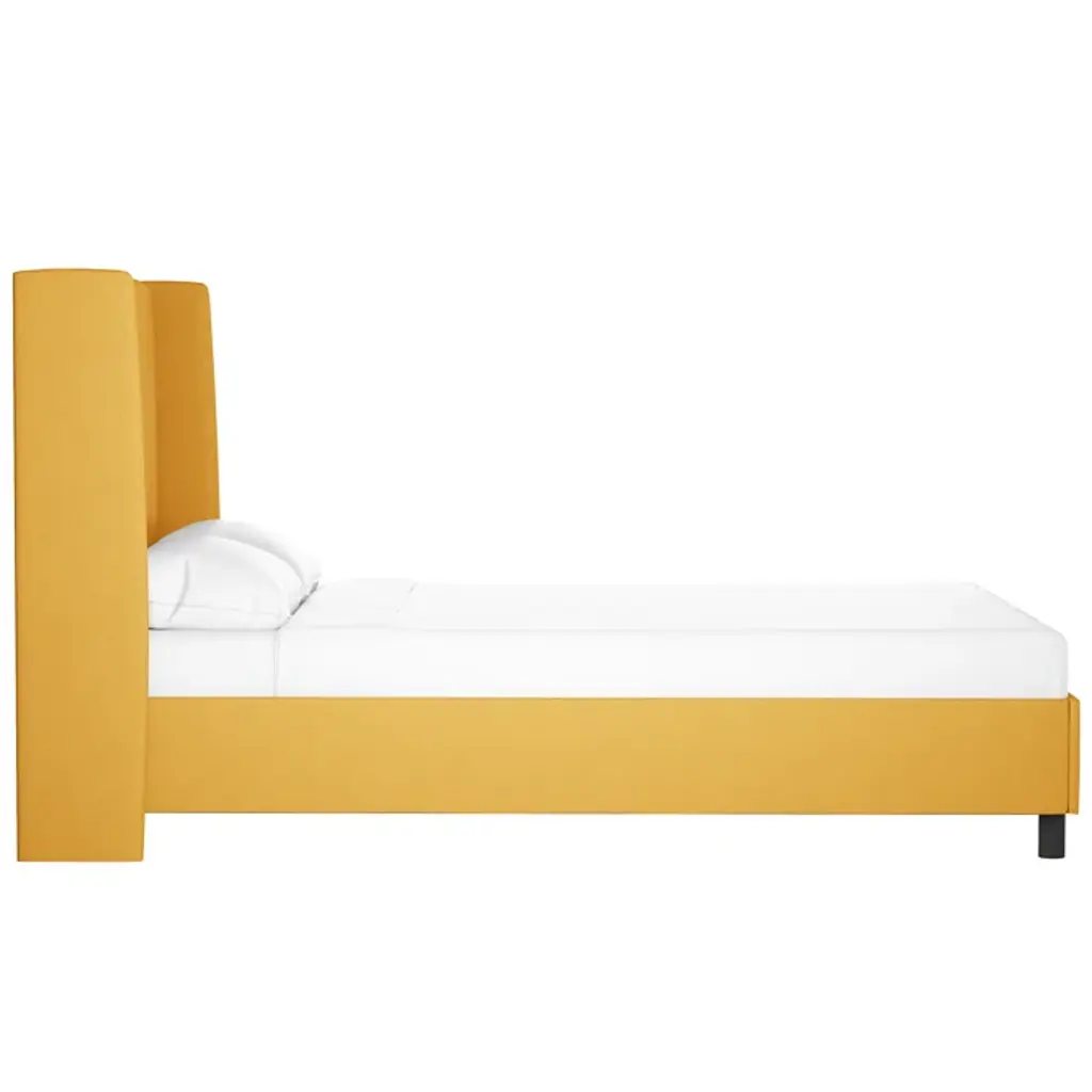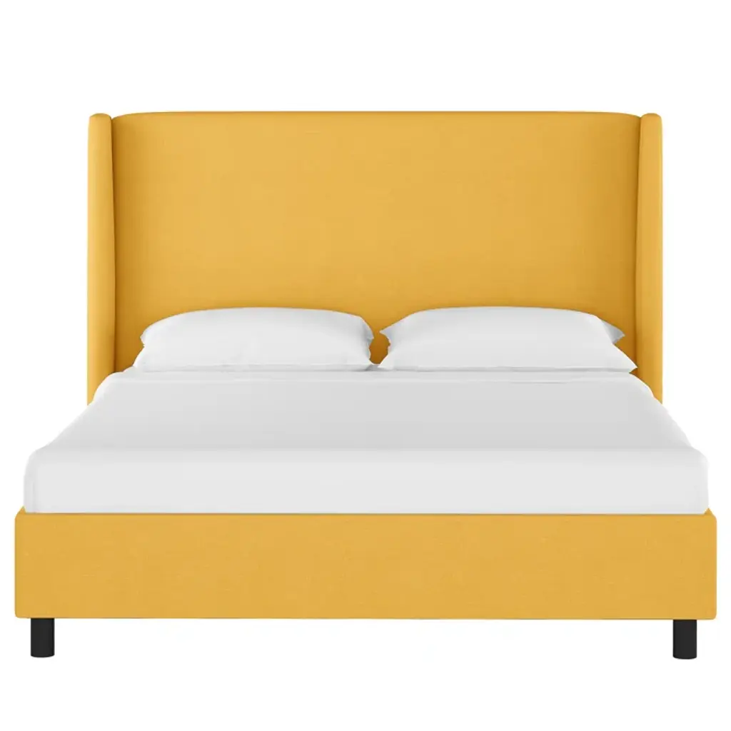 With its understated yet elegant design, our platform bed sets the stage in your main or guest bedroom. A solid wood frame provides durability, while the upholstered wingback headboard offers just-right support. It's made to order in the USA in your choice of size and color for effortless mixing and matching with your space. Plus, it comes with a slat kit to support your mattress (sold separately), so there's no need for a box spring. Love this look? Shop the entire collection.