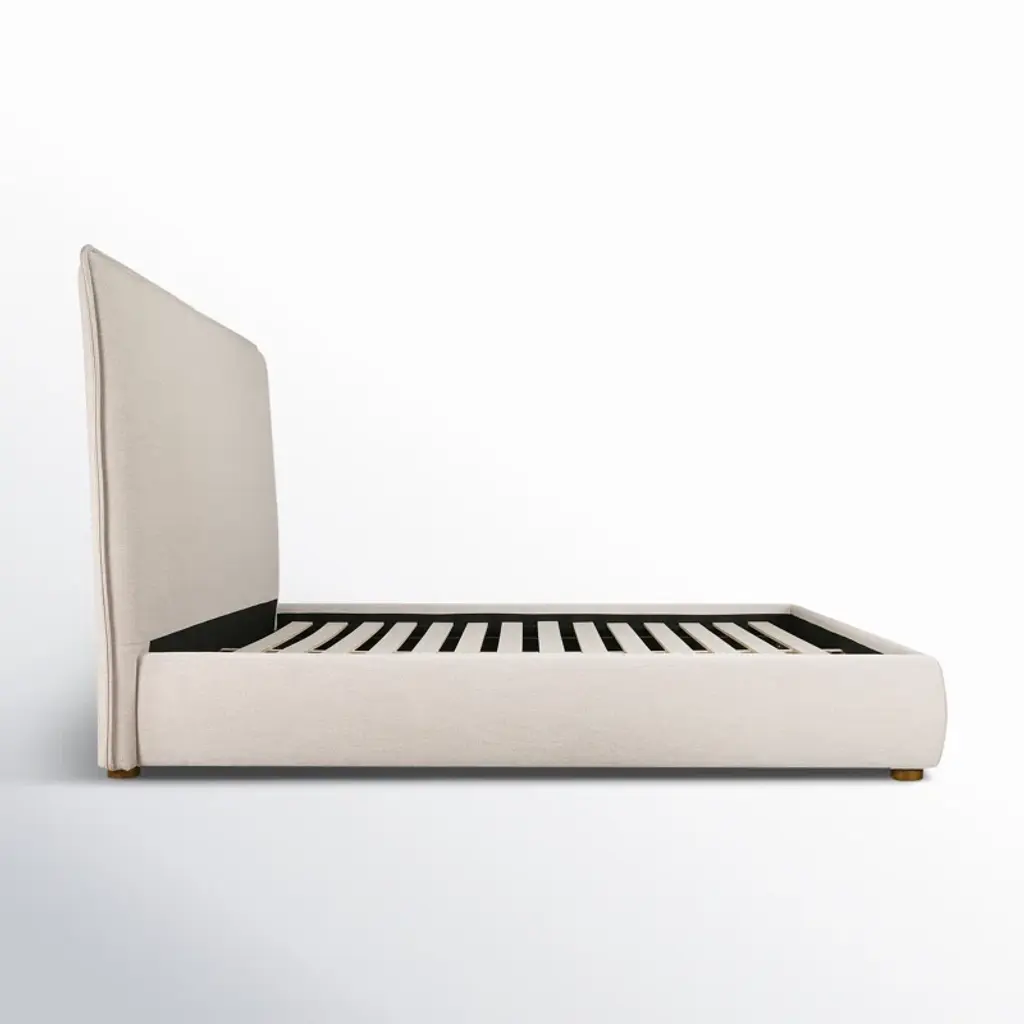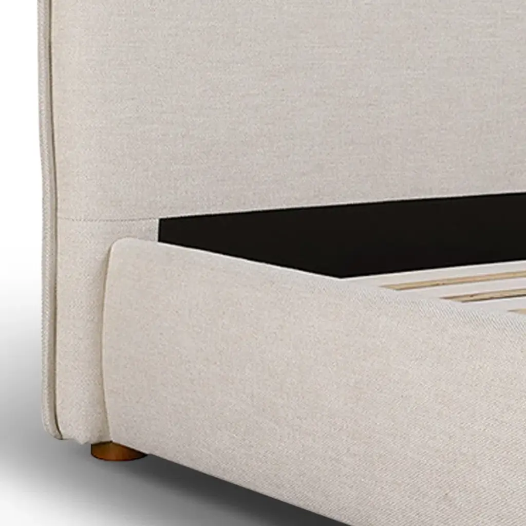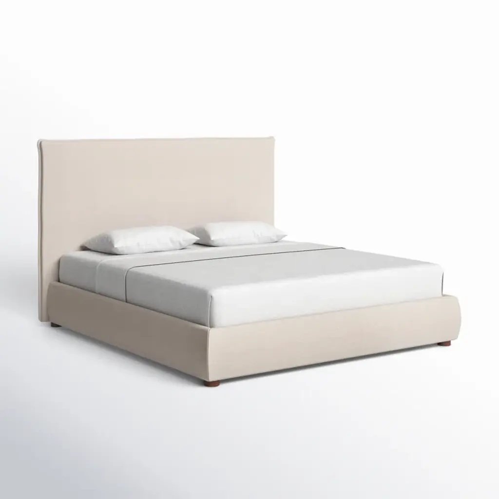 Upholstered from a soft material, the Timothy bed is for those who dream of their next beach destination. Its padded tall headboard and solid pine-poplar mix wood frame make it comfy and reliable, while its timeless design and neutral tone showcase a classic, utilitarian look.