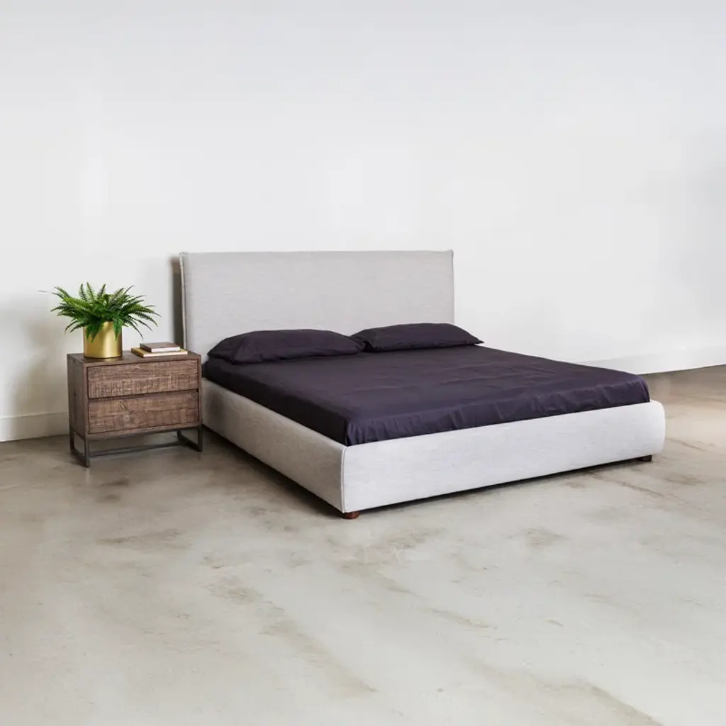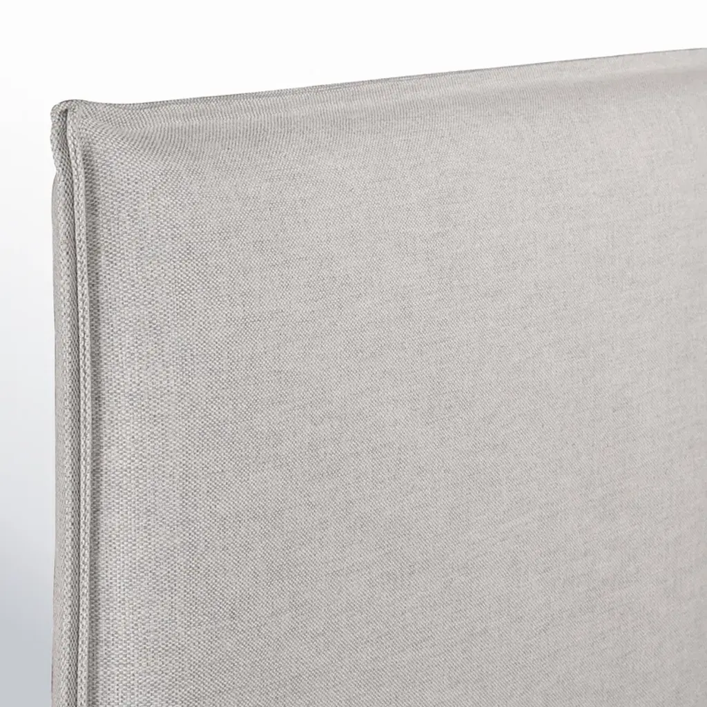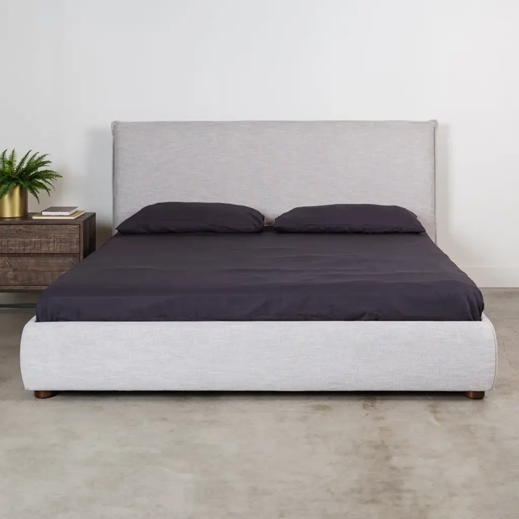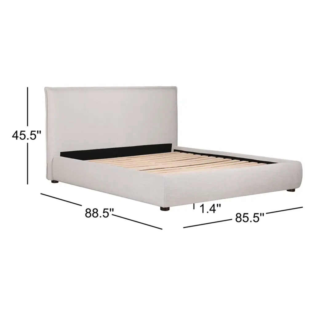 A French seam and neutral upholstery give this clean-lined bed its versatile, elegant look and feel. This bed includes a headboard, footboard, and rails made from solid pine, poplar, and engineered wood. The upholstery adds a tailored touch, while foam fill in the headboard offers a cozy place to kick back. Plus, thanks to the sturdy system of slats, you can add your preferred mattress without the need for a box spring.