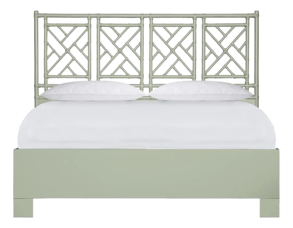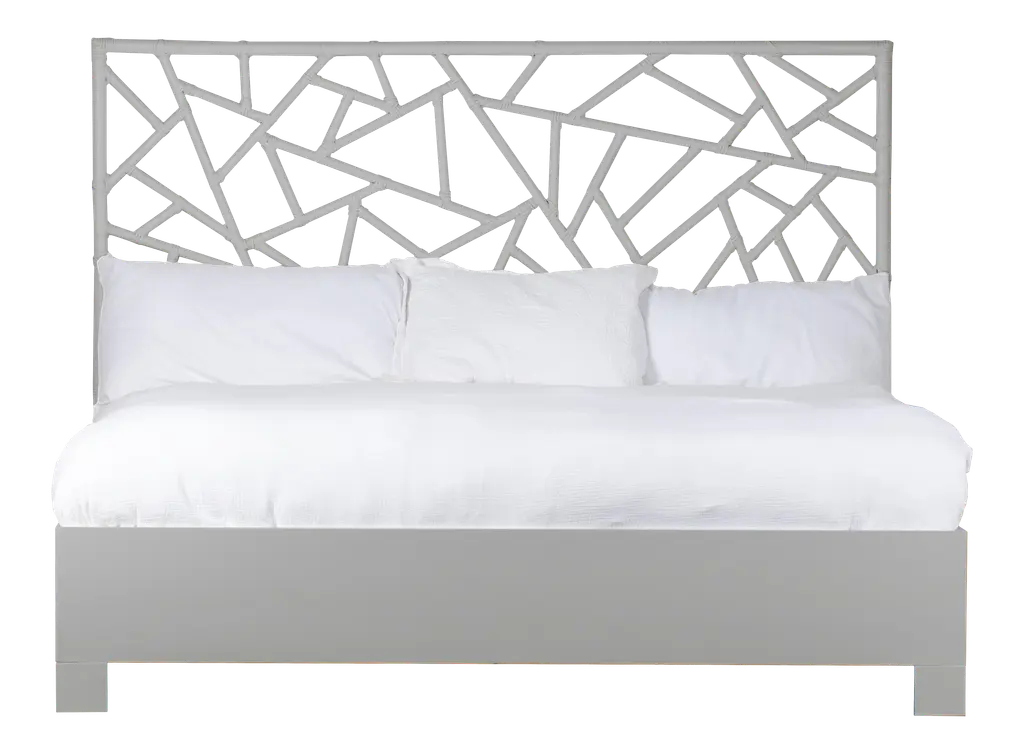 Add a touch of modern charm to your bedroom with the beautifully crafted Tulum bed. Handcrafted from natural rattan and meticulously wrapped with leather bindings at each joint, this David Francis Furniture design is a true statement piece. The platform maple bed frame is designed to accept a mattress only. Perfect for those who appreciate modern style, this bed makes a bold statement while elevating your space with unmatched style. This piece is made to order, so please allow time for shipping.