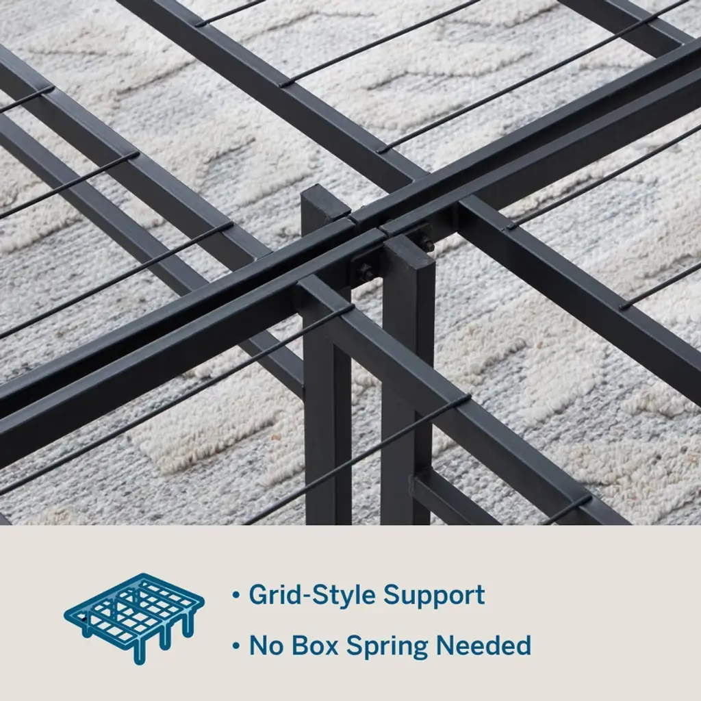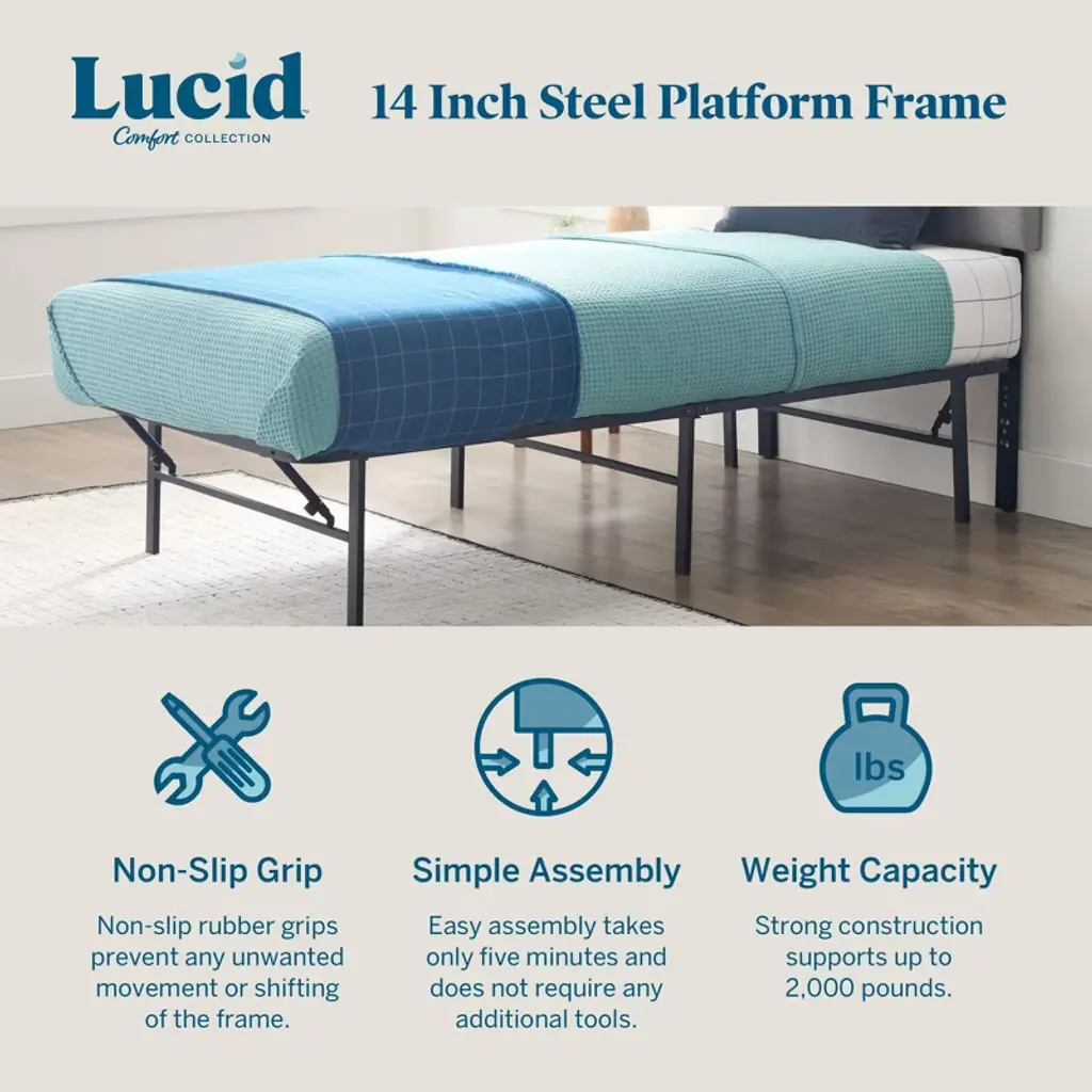 At Lucid, we make beds for the whole family— because when you wake up feeling your best, your family gets the best version of you too. The Lucid Comfort Collection 14-Inch Platform Bed Frame is the easiest and most affordable way to give your mattress the support it deserves. The grid style design erases the need for additional support such as a box spring. And the sturdy steel construction with a 2000-pound weight capacity leaves no doubt that this high-profile bed frame will follow through with needed support. The anti-slip grips on the metal bed frame legs keep the frame in place. And the easy assembly only takes five minutes, with no additional tools required. Support awaits.