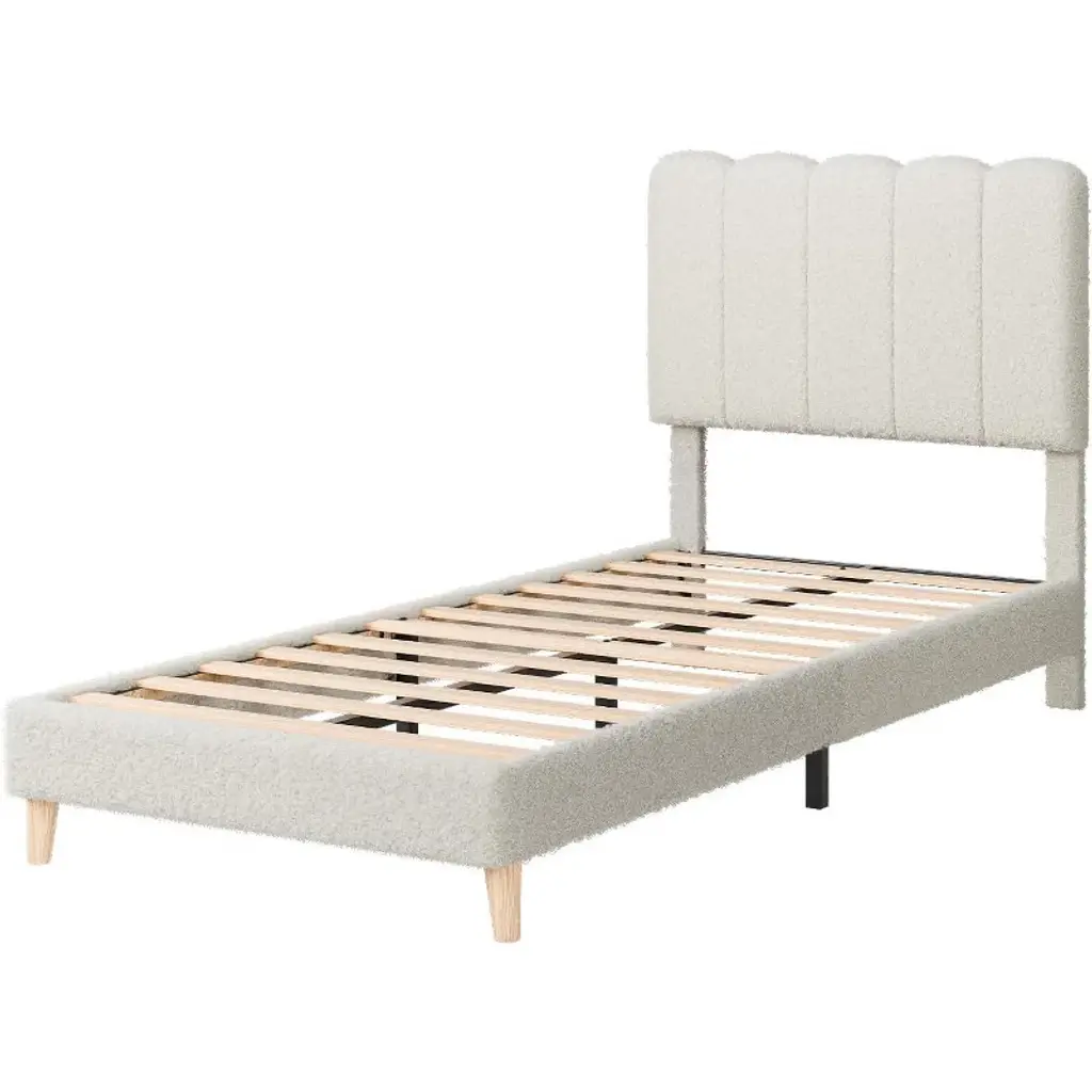 Twin/twin Xl Boucle Bed Frame With Wave Headboard, Upholstered Platform Bed For Kids, No Box Spring Needed