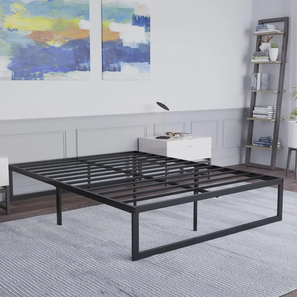 Universal 14 Inch Metal Platform Bed Frame - No Box Spring Needed W/ Steel Slat Support And Quick Lock Functionality