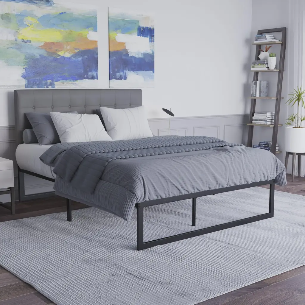 Universal 14 Inch Metal Platform Bed Frame - No Box Spring Needed W/ Steel Slat Support And Quick Lock Functionality