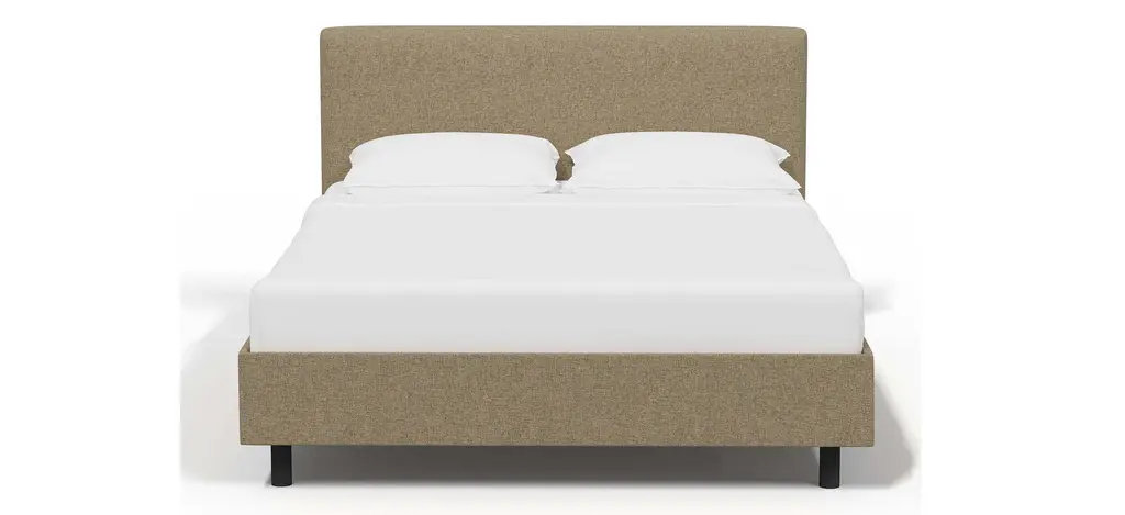 Just because the Valerie Platform Bed goes with everything doesn't mean it lacks in style. This simple, low profile piece stands out because the headboard and bed rails are upholstered in a quality Textured Linen fabric that holds its own as a design feature. The custom made piece has a square shape, and is manufactured in Illinois. Not only is the included wooden slat system easy to incorporate onto the metal frame, it also makes adding a box spring unnecessary. Invest in a platform bed that is well made—and a style that will last you through several remodels.