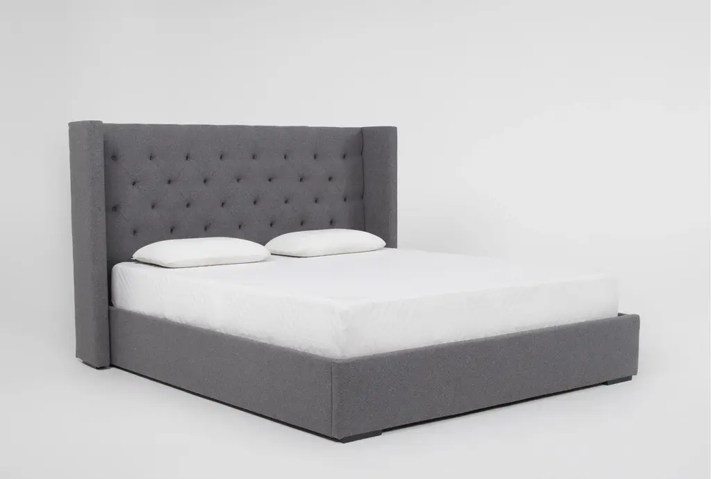 Vera Dream Grey Diamond Tufted 52"h King Upholstered Shelter Platform Bed