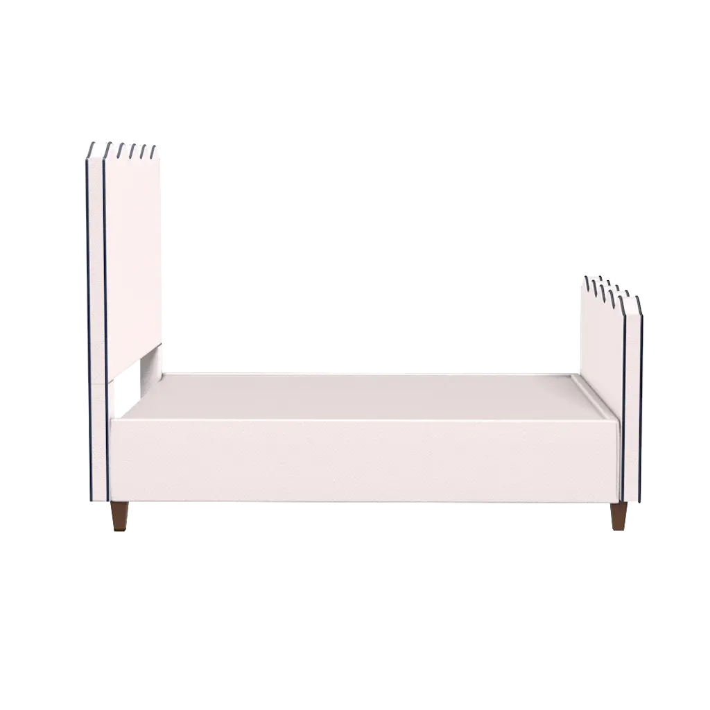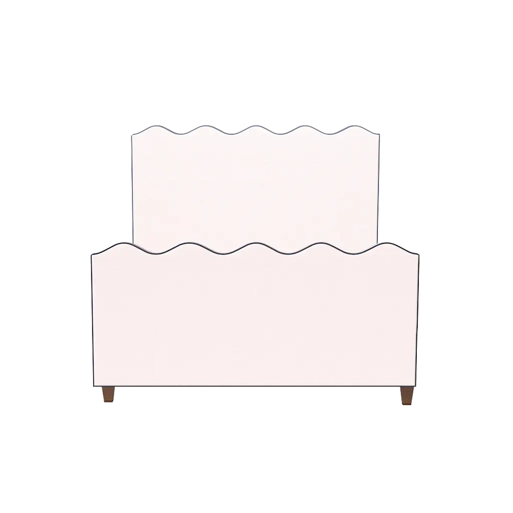 King Dimensions: 80W x 83D x 60H x 12 FE Queen Dimensions: 62W x 83D x 60H Twin Dimensions: 43W x 78D x 60H COM King: COM Queen: 14 yards and 3 yards Welt COM Twin: 9 yards and 2 yards Welt Sometimes, a headboard just isn't enough. We've transformed our best-selling Wave Headboard to a platform bed WITH FOOTBOARD in all three sizes. The neat and classic platform frame adds "grown up" appeal to the whimsical wave design. The contemporary design and clean lines of the Wave Platform bed, scream for crisp, tidy bed linens for an easy, pulled together look. Always Make Your Bed.Made in America. ** Please Note, if using COM, production will not start until we receive your COM FORM Made in America.