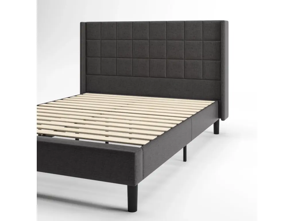 With its symmetrical square-stitched headboard, wingback accents, and plush upholstery that can polish off just about any bedroom, the Laurel Platform Bed can please both your analytical side and your creative side. Overflowing with modern charm and traditional comfort, it's a bed with superb style and sound mattress support. It's equipped with a wood slat platform made for supporting any mattress without the added box spring, and its framework is constructed with durable steel and center support legs that eliminate sagging and extend mattress life. In other words, it's the partner your beloved mattress has been waiting for. And its packaging is about as clever as they come, with all the parts, tools, and instructions you'll need to build it packed in the back of the headboard compartment, ready to be unzipped and assembled in less than an hour. Also backed by our 5-year worry-free warranty, you'll be amazed by how easy it is for both your right brain and left brain to relax and unwind on top of this chic and affordable platform bed.
