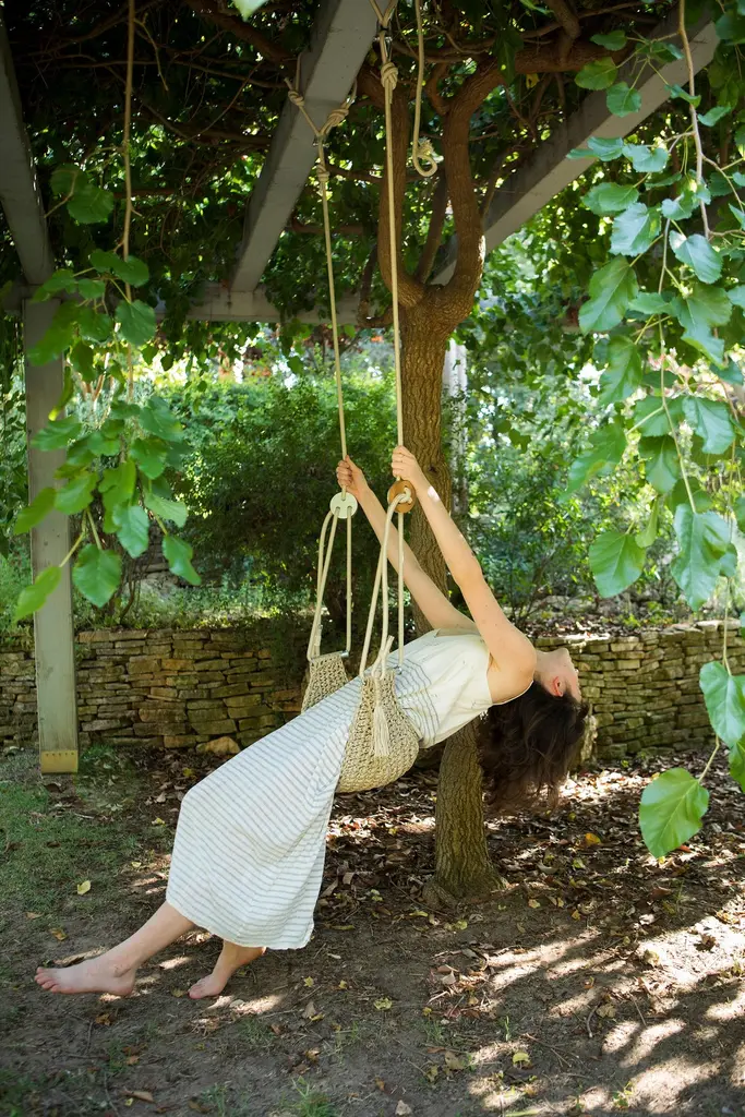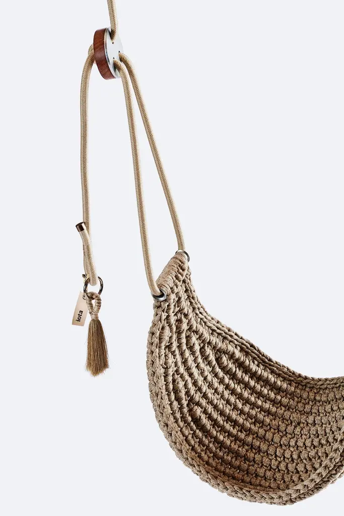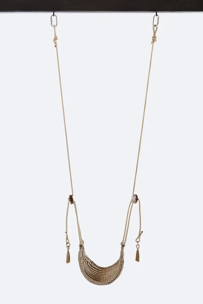 The IOTA Saddle Swings are lightweight and compact. They are good for enjoying the outdoors and kids love them too. You can easily take the hammock like swing with you to hang during camping trips. The swings are handmade from a signature yarn designed and produced exclusively by IOTA with UV protection therefore perfect for a sophisticated resort style look indoors or outdoors. The seat of the saddle swing is made entirely of crochet, which has a natural tendency to stretch. The seat can initially be a little tight and with use stretches and takes the shape of the body.In addition to being a contemporary design studio iota soft living is a social project that employs, teaches and empowers women who are otherwise unable to work by teaching them the crochet technique and providing them work which they can carry out from their homes.Seat Dimensions: 30 x 60 cm / 12 x 24 inBack Dimensions: 52 x 11 cm / 20 x 4 inThe seat of the saddle swing is made entirely of crochet, which has a natural tendency to stretch. The seat can initially be a little tight and with use stretches and takes the shape of the body.Height – The swings are made for a ceiling height of 285cm / 9'4". 2 Cabled swings can be adjusted manually 15cm / 5.9" higher or lower. 4 Cabled swings are not adjustable and therefore need to be made by order of height. We don't make longer swings but for ceilings higher than 285cm / 9'4" we provide 4mm cables.Maintenance - Remove dust regularly with a vacuum cleaner. The use of chemical cleaning materials may harm the product. Try to address stains before they dry, with a moist cloth. During off-season, keep your outdoor furniture stored in a cool, ventilated, and dry place, indoors. If the furniture must remain outdoors, it’s best for it to be under a roof and placed on a dry surface to prevent water damage from below. After rainfall or harsh weather conditions, make sure to wipe off excess moisture or water from all flat surfaces. Products may vary up to 5% as objects are handmade.
