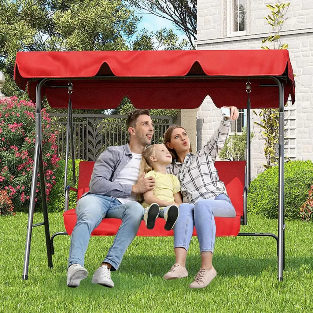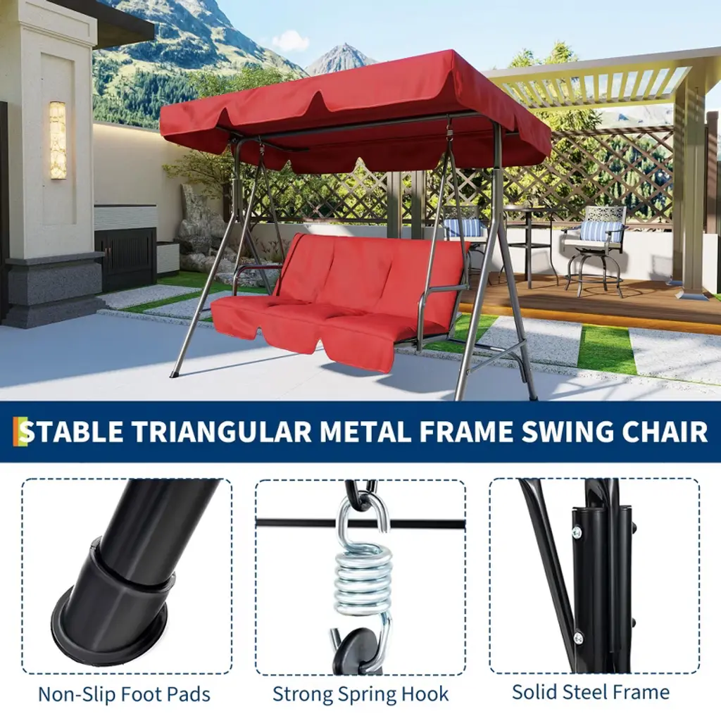 3-seat Patio Swing Chair With Adjustable Canopy-heavy-duty Outdoor Porch Swing For Adults With Breathable Textilene Armrests Seat-perfect,red