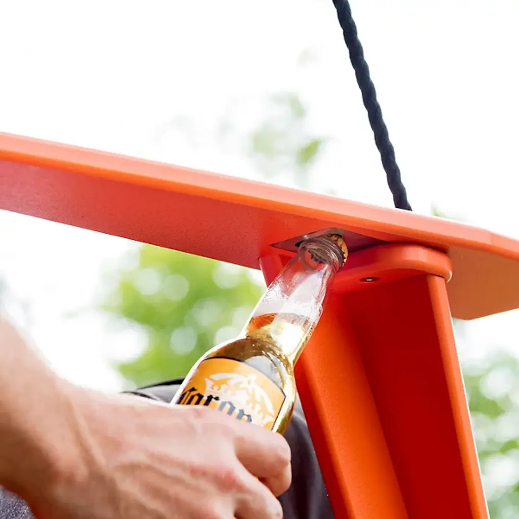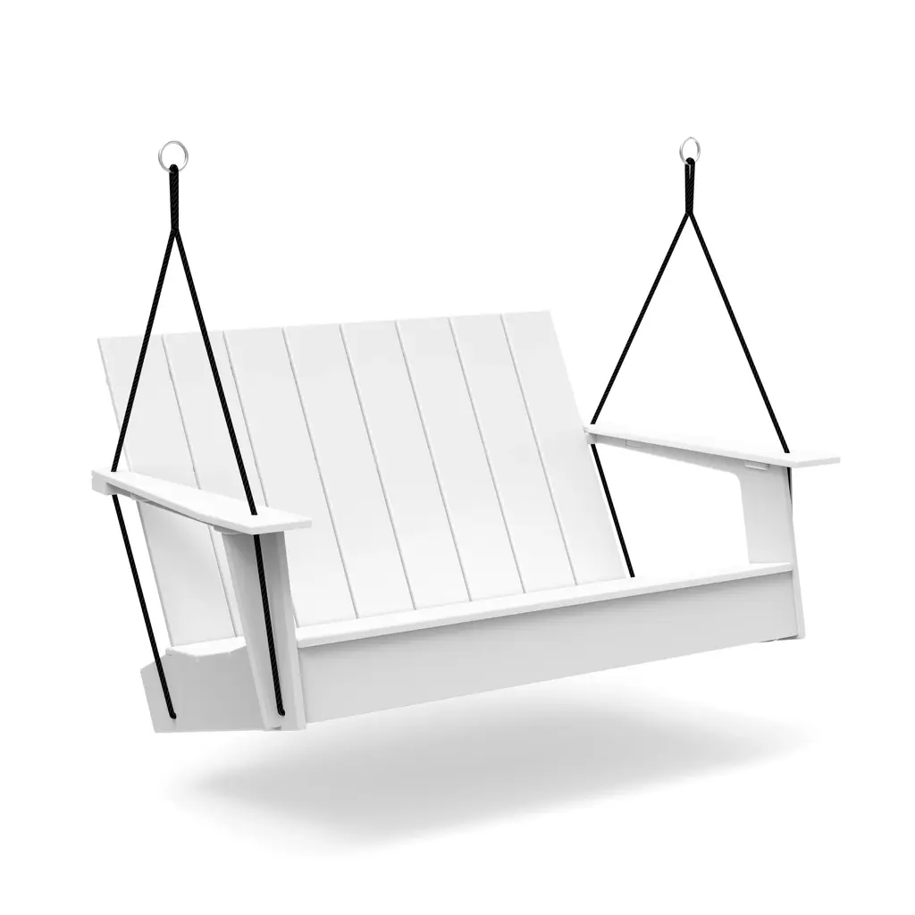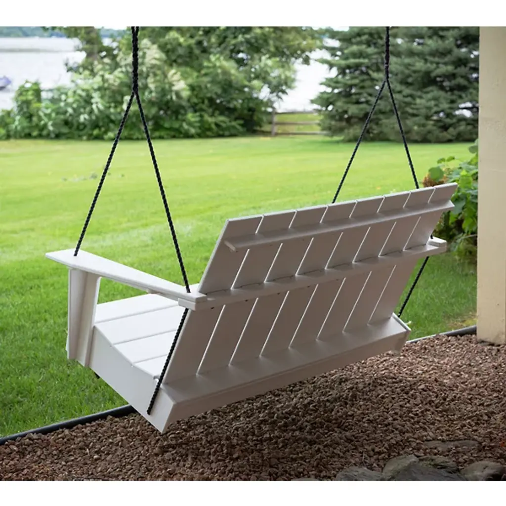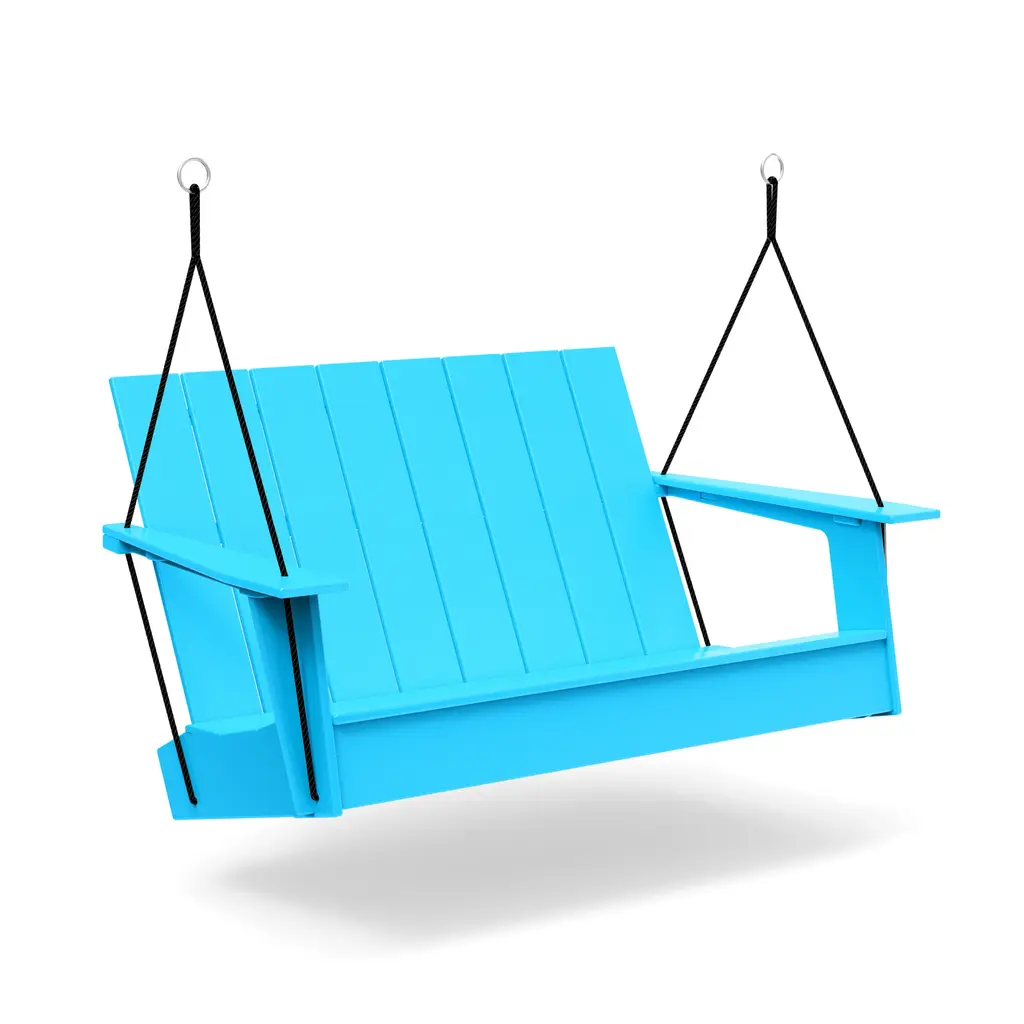The Adirondack Outdoor Porch Swing by Loll Designs is a fun, functional addition to spaces needing a spot to relax. With enough rope to support this design and give it room to swing, this piece is the perfect addition to porches and its clean silhouette and angled back provides a comfortable spot to kickback. Hidden bottle openers under the arms pair perfectly with the recycled, high-density polyethylene build of this design, resulting in a durable construction that lets you focus on sitting back and unwinding from the day.