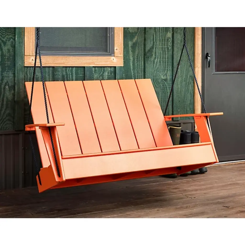 The Adirondack Outdoor Porch Swing by Loll Designs is a fun, functional addition to spaces needing a spot to relax. With enough rope to support this design and give it room to swing, this piece is the perfect addition to porches and its clean silhouette and angled back provides a comfortable spot to kickback. Hidden bottle openers under the arms pair perfectly with the recycled, high-density polyethylene build of this design, resulting in a durable construction that lets you focus on sitting back and unwinding from the day.