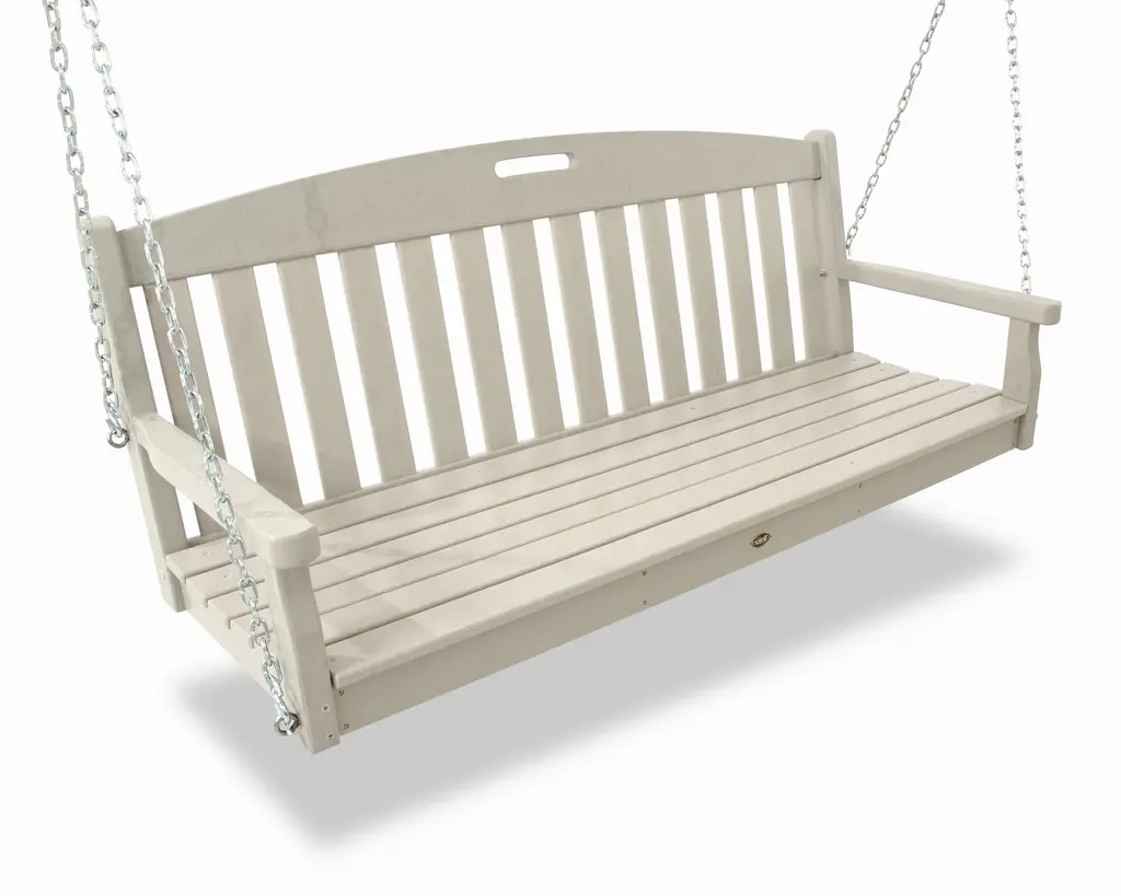 Experience ultimate comfort and craftsmanship with this Amish-made porch swing, featuring a fully rolled seat and Adirondack-style backrest for ergonomic support. Built in the USA with 1-inch thick slats and rust-resistant yellow zinc hardware, it's available unfinished or in six eco-friendly water-based stains that protect and preserve with UV resistance. Upgrade to an optional Minwax® clear coat for added durability against the elements. Assembly required.