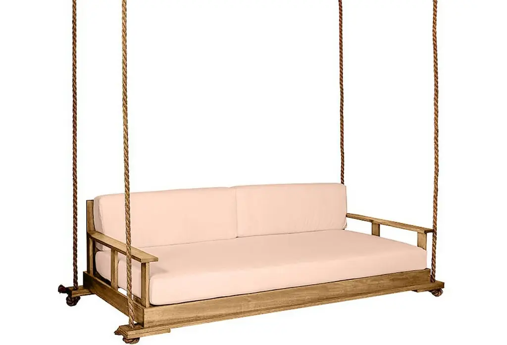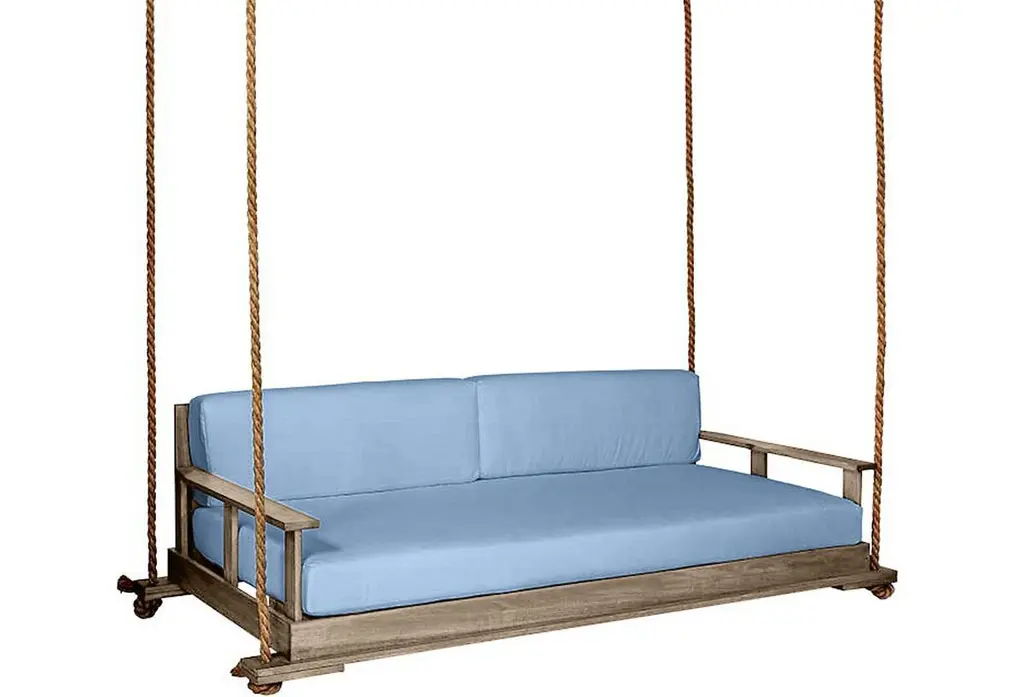 Relax with a good book or a warm cup of coffee on this luxuriously cozy porch swing. With a cushion of durable Sunbrella fabric over a five-inch-thick marine-grade foam mattress, it is the perfect outdoor escape. No hardware included. Handcrafted in the USA.