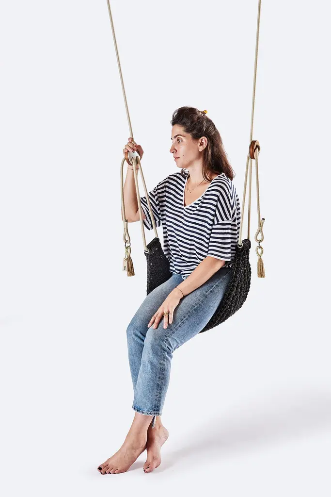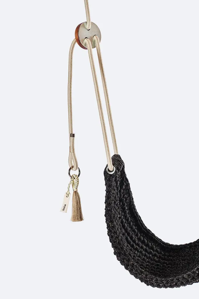 The IOTA Saddle Swings are lightweight and compact. They are good for enjoying the outdoors and kids love them too. You can easily take the hammock like swing with you to hang during camping trips. The swings are handmade from a signature yarn designed and produced exclusively by IOTA with UV protection therefore perfect for a sophisticated resort style look indoors or outdoors. The seat of the saddle swing is made entirely of crochet, which has a natural tendency to stretch. The seat can initially be a little tight and with use stretches and takes the shape of the body.In addition to being a contemporary design studio iota soft living is a social project that employs, teaches and empowers women who are otherwise unable to work by teaching them the crochet technique and providing them work which they can carry out from their homes.Seat Dimensions: 30 x 60 cm / 12 x 24 inBack Dimensions: 52 x 11 cm / 20 x 4 inThe seat of the saddle swing is made entirely of crochet, which has a natural tendency to stretch. The seat can initially be a little tight and with use stretches and takes the shape of the body.Height – The swings are made for a ceiling height of 285cm / 9'4". 2 Cabled swings can be adjusted manually 15cm / 5.9" higher or lower. 4 Cabled swings are not adjustable and therefore need to be made by order of height. We don't make longer swings but for ceilings higher than 285cm / 9'4" we provide 4mm cables.Maintenance - Remove dust regularly with a vacuum cleaner. The use of chemical cleaning materials may harm the product. Try to address stains before they dry, with a moist cloth. During off-season, keep your outdoor furniture stored in a cool, ventilated, and dry place, indoors. If the furniture must remain outdoors, it’s best for it to be under a roof and placed on a dry surface to prevent water damage from below. After rainfall or harsh weather conditions, make sure to wipe off excess moisture or water from all flat surfaces. Products may vary up to 5% as objects are handmade.