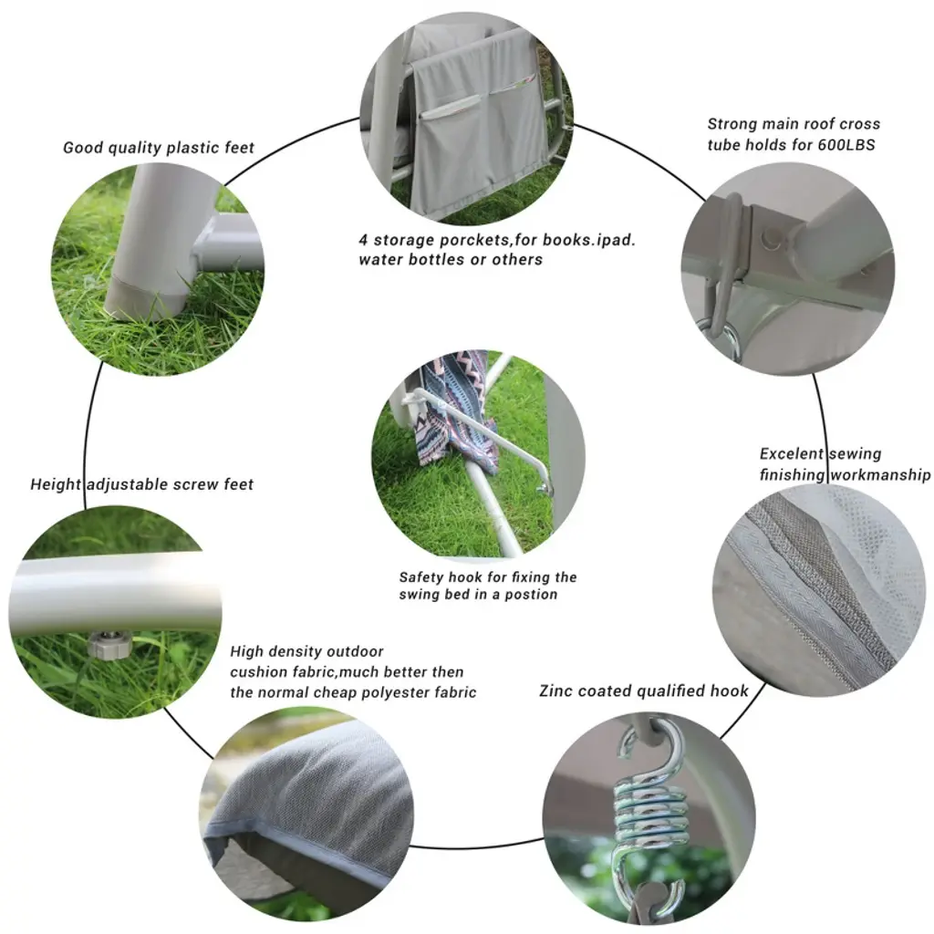 The CAVINAS swing features a sturdy steel frame with a professional rust prevention treatment and high-end outdoor powder coating, ensuring durability and a maximum weight capacity of 600 lbs. The seat and backrest are made of breathable, waterproof Teslin fabric that is easy to clean and provides excellent heat dissipation. This versatile swing easily converts from a 3-person swing chair to a 2-person swing bed, perfect for creating memories with loved ones. Equipped with a plush 3.9-inch cushion filled with sponge and PP cotton, it offers soft, comfortable seating. The upgraded suspension system ensures a quieter and more durable swing experience.