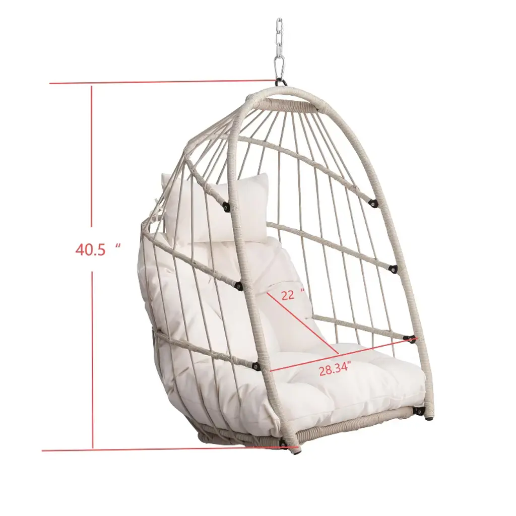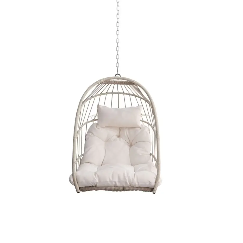 Cavinas Pe Egg Outdoor Swing Chair With Cushion And Headrest Pillow,rattan Porch Swing For Bedroom,garden,courtyard,white