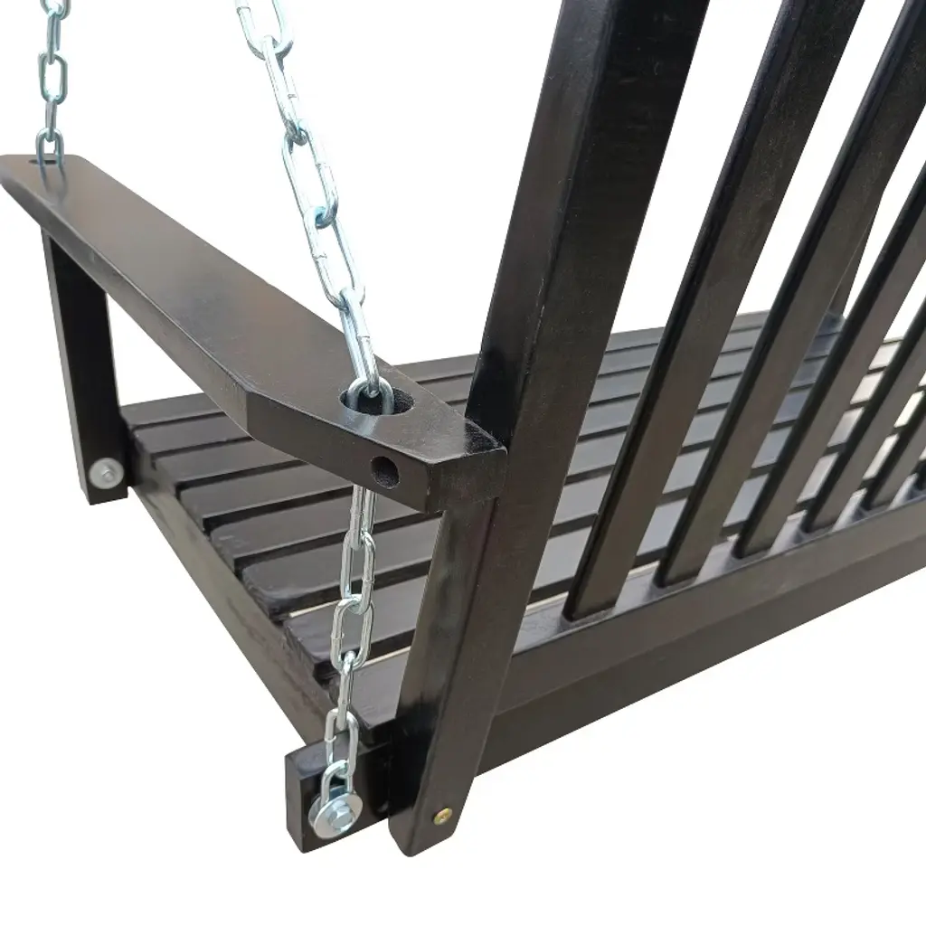 Enjoy outdoor relaxation with this sturdy fir wood porch swing, designed for comfort and durability. With an 800 lb weight capacity and wide seating area, it comfortably accommodates two adults. The swing features weather-resistant zinc-plated chains for secure hanging and is treated with a protective varnish to withstand sun, rain, and humidity. Easy to assemble (hardware included), this swing brings rustic charm to porches, patios, or gardens.