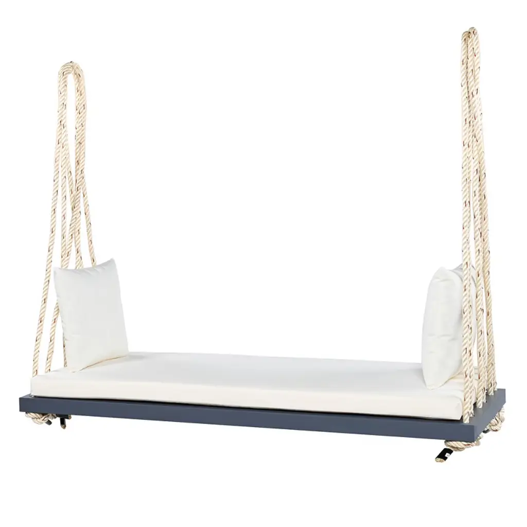 Cowlown Gray Acacia Wood Hanging Swing Chair, Porch Swing With Cushion & Pillows, 400lb Capacity
