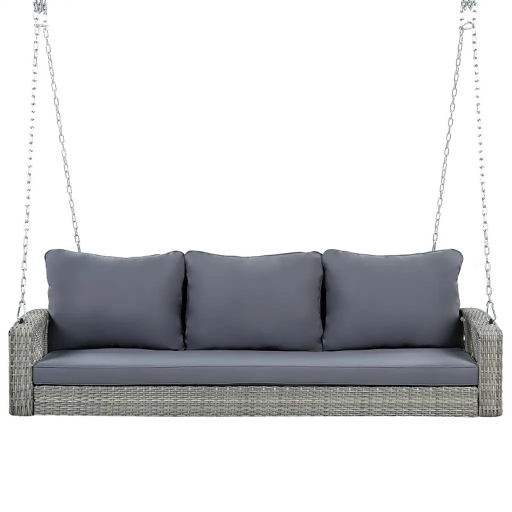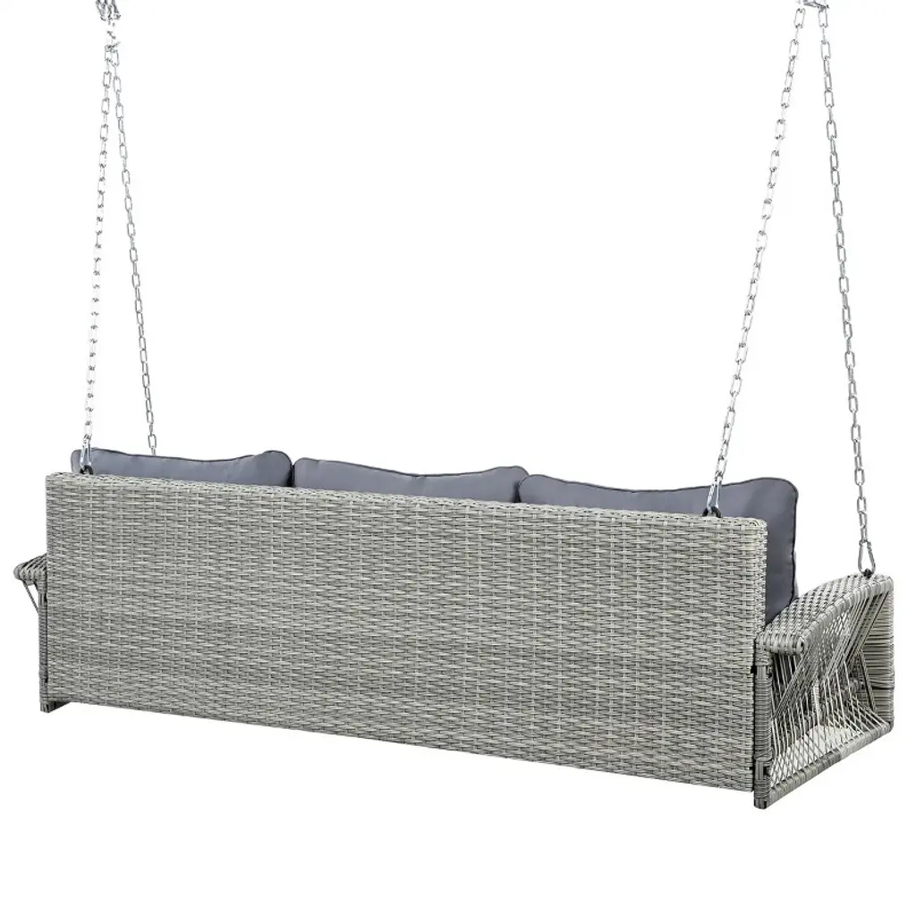 Eljget 3-person Porch Swing Bench Patio Swing Chair With 2 Hanging Chains For Backyard, Gray Wicker