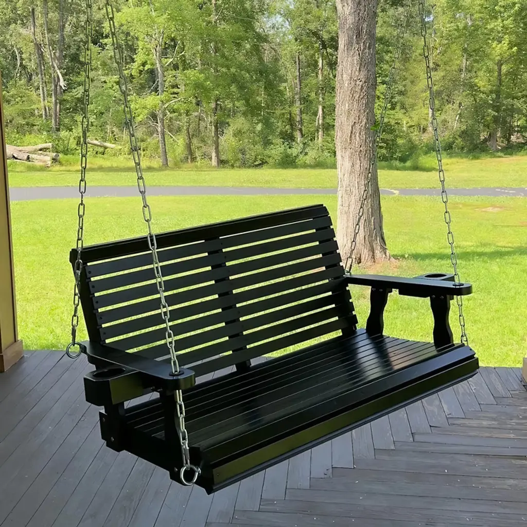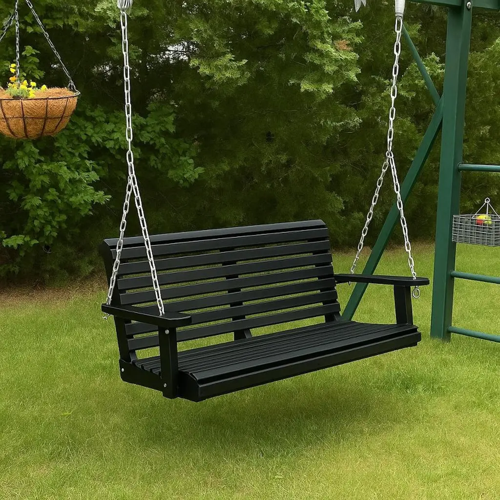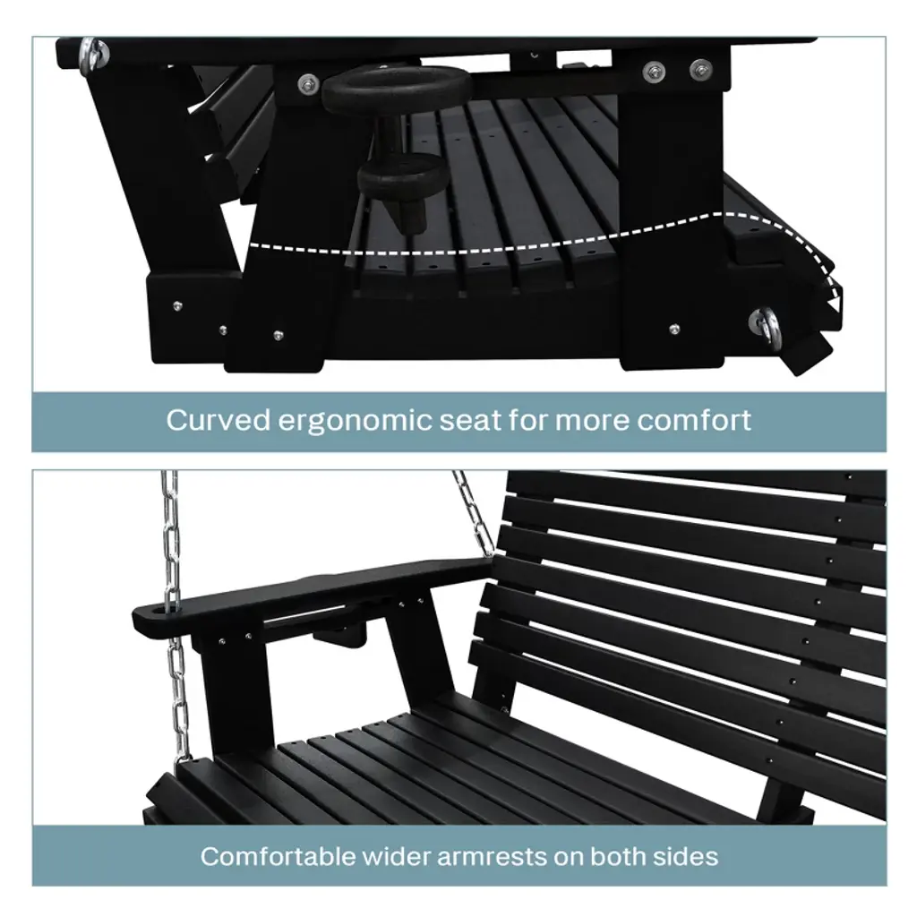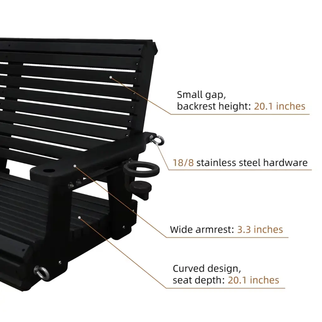 Fortune Candy Hdpe Porch Swing With 18/8 Stainless Steel Hardware And Hanging Chains, Heavy Duty 1200 Lbs, For Outdoor Patio Garden Yard (Matte Black)