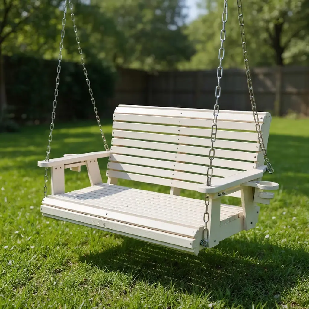 Fortune Candy Hdpe Porch Swing With 18/8 Stainless Steel Hardware And Hanging Chains, Heavy Duty 1201 Lbs, For Outdoor Patio Garden Yard (White)